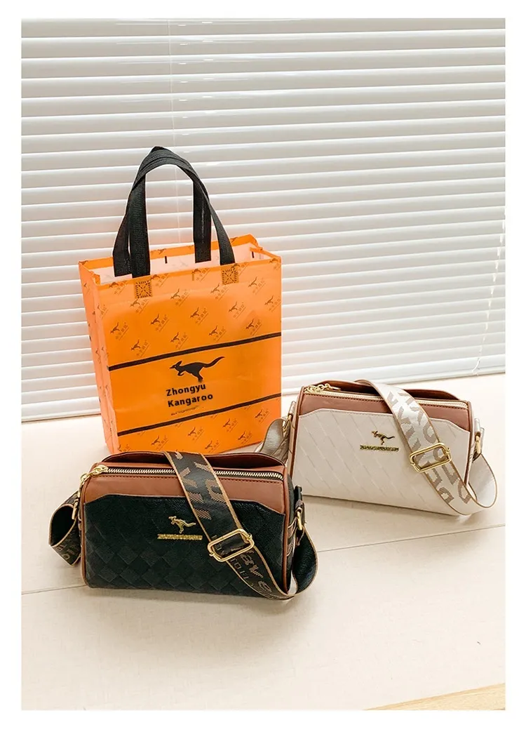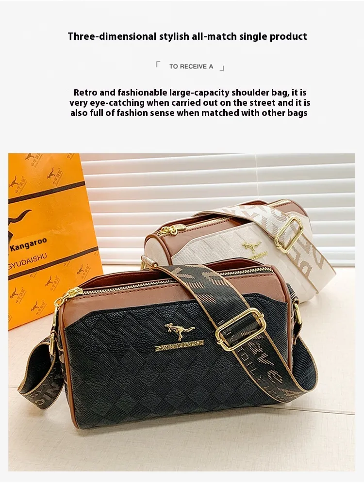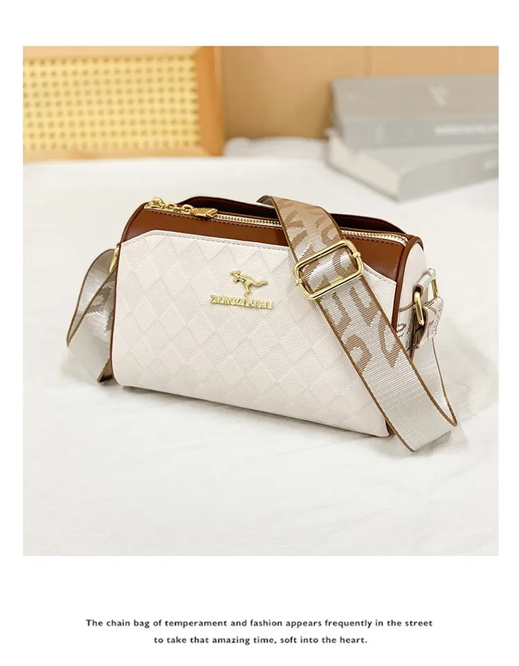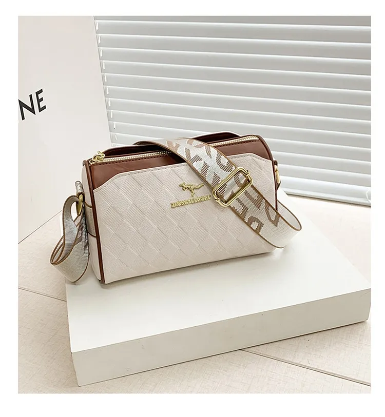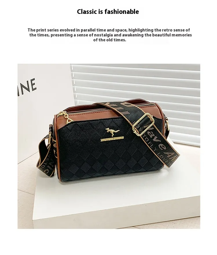 Women's Bag Chessboard Plaid One Shoulder Bag Wide Shoulder Strap Messenger Bag Retro Style Kangaroo Handbag Bags