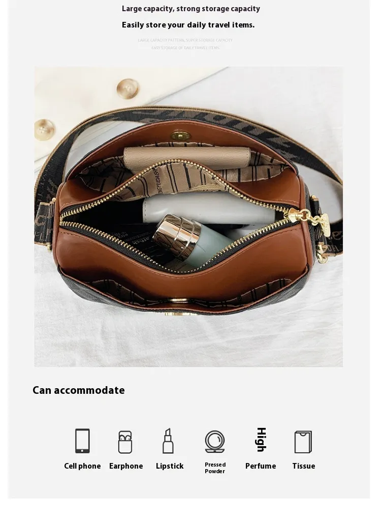Comfort is key when it comes to carrying a bag, and this one delivers. The wide shoulder strap not only adds to the bag's stylish aesthetic but also ensures that it rests comfortably on your shoulder without digging in or causing discomfort. This makes it ideal for everyday use or longer outings where you need to keep your hands free while maintaining a chic look.