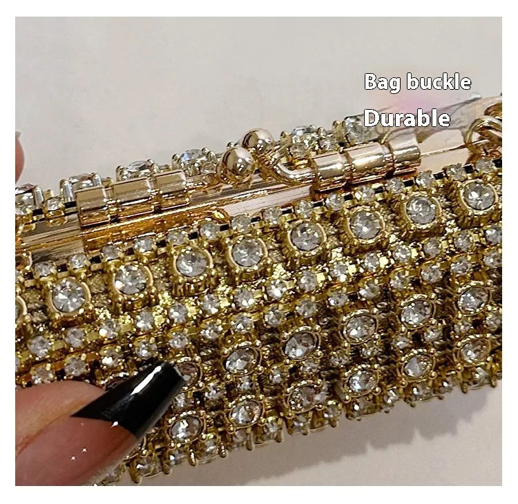 Crafted with meticulous attention to detail, this bag is designed to withstand the test of time. The rhinestones are securely affixed, and the durable frame ensures it remains in pristine condition even after multiple uses.