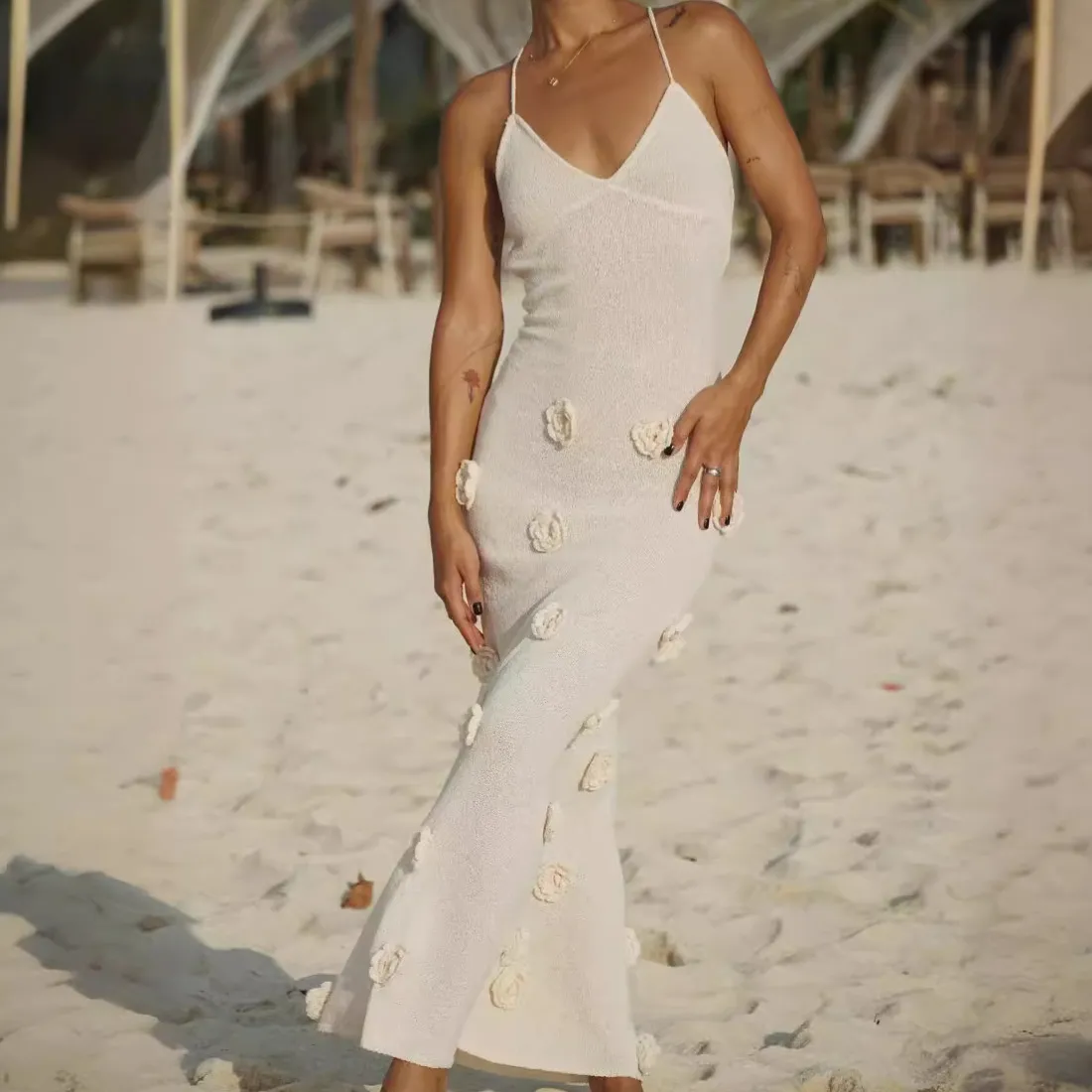 Discover the elegance of the Women's Braces Skirt Three-Dimensional Flower Knitted Backless Lace-up Dress, a perfect blend of sophistication and style. This dress is designed for the modern woman who values comfort without compromising on fashion. Whether you're attending a summer garden party or a casual day out, this dress is your go-to option.