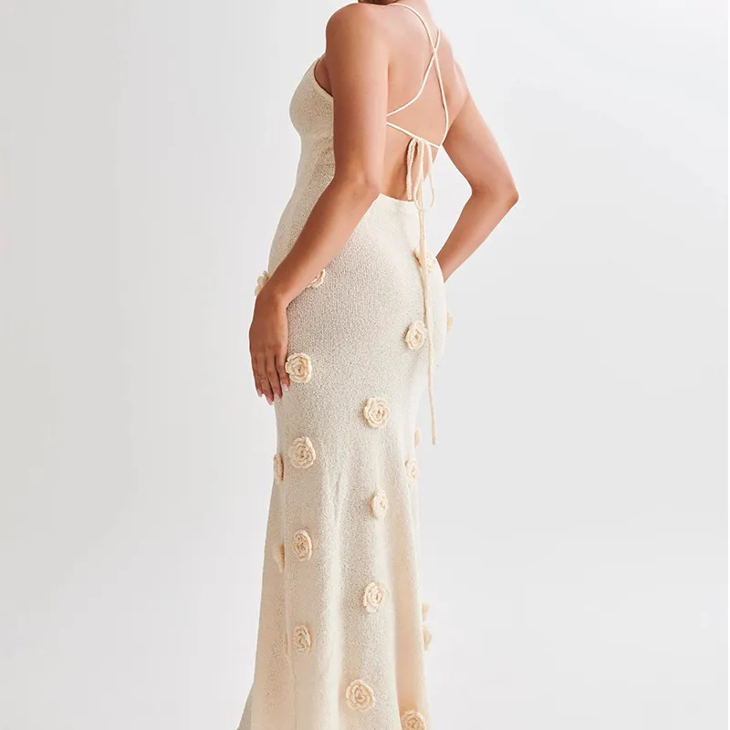 Women's Braces Skirt Three-dimensional Flower Knitted Backless Lace-up Dress