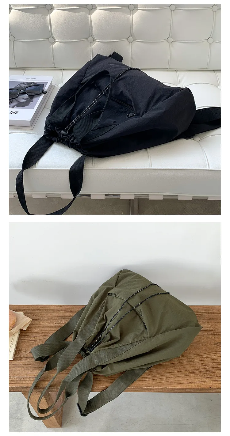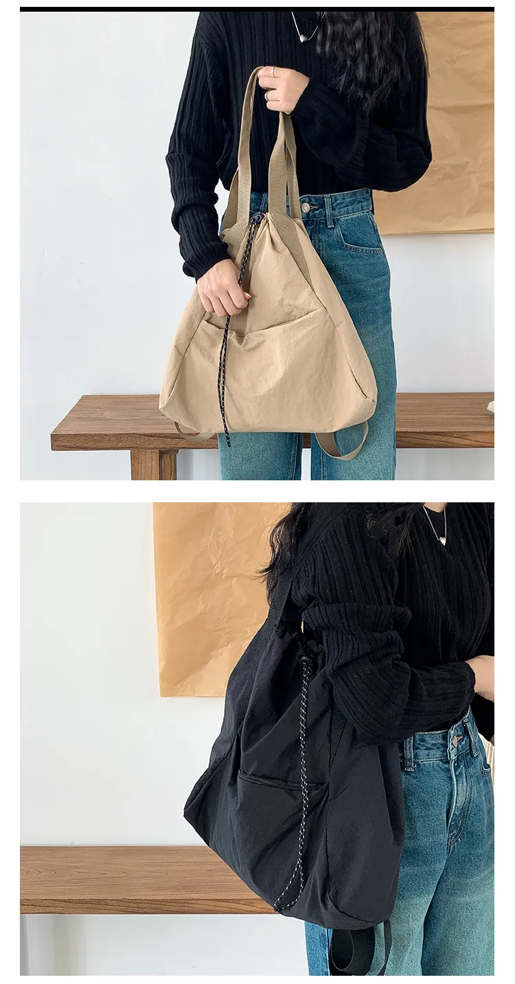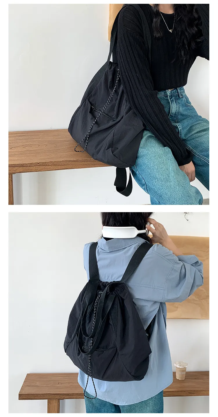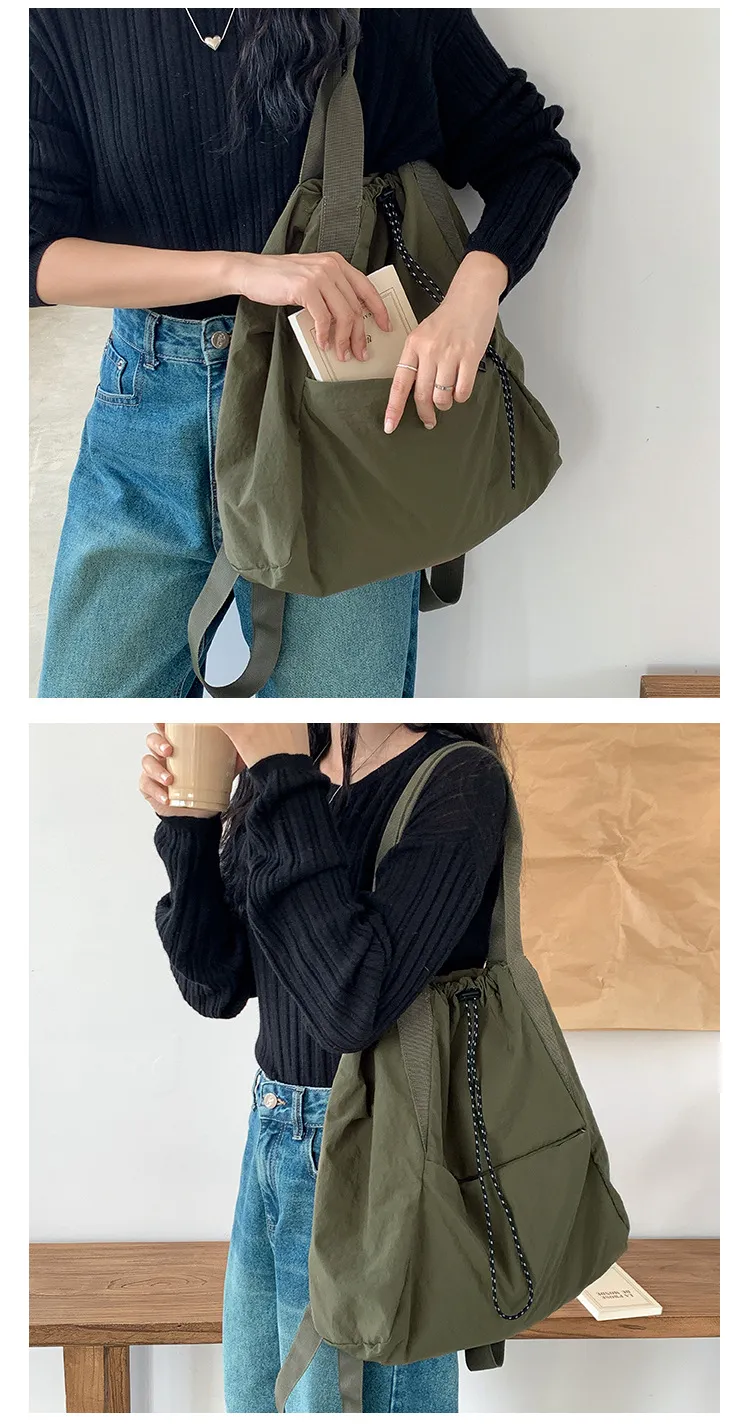 Add a pop of casual chic to your everyday look with the Women's Casual Korean Version Drawstring Tote Bag. Designed with a trendy drawstring closure, this tote offers a relaxed and fashionable look, perfect for daily outings or a weekend adventure. The versatile design provides ample space for all your essentials, from your phone and wallet to snacks and books, making it ideal for shopping trips, the beach, or casual meetups.