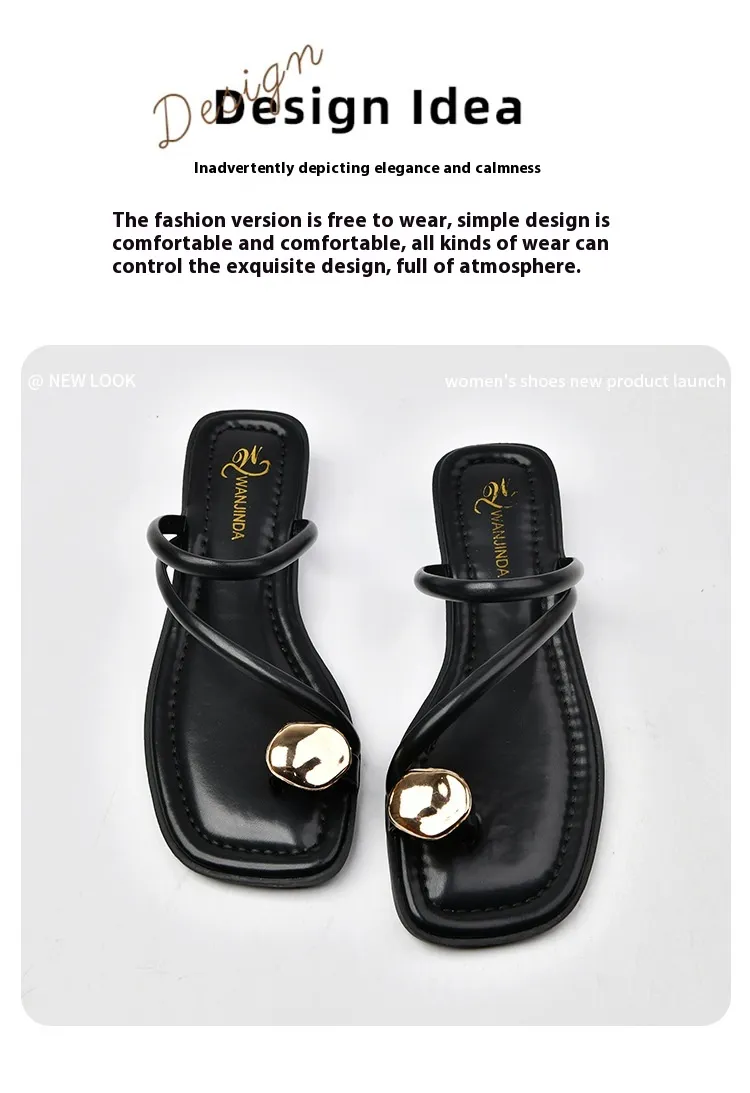 Add a touch of elegance to your summer footwear collection with the Women's Chunky Heel Small Golden Button Toe Covering Small