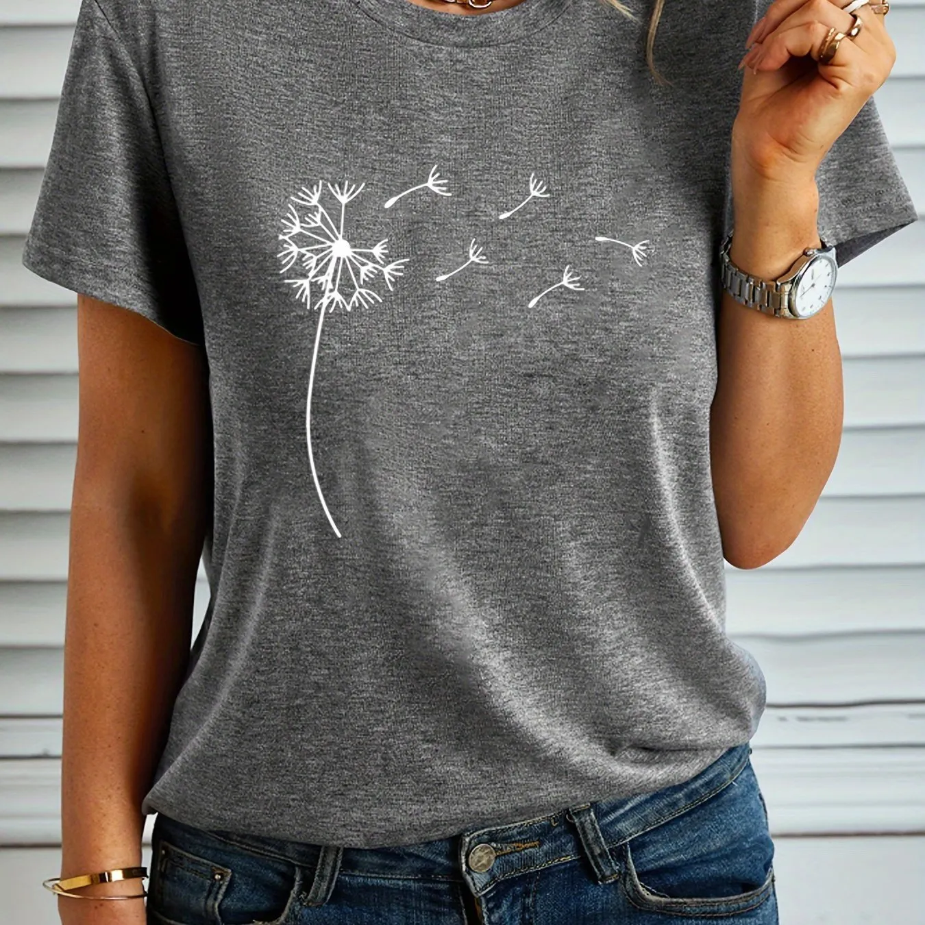 Women's Dandelion and Butterfly Printed T-shirt – A Touch of Nature's Elegance