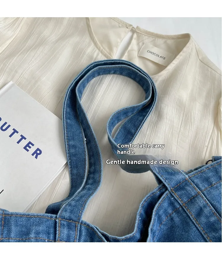 Crafted from high-quality denim, this handbag is designed to withstand daily wear and tear, while offering a soft and comfortable texture. The large capacity ensures you have enough space for all your essentials, from your wallet and phone to makeup and snacks. The shoulder straps offer comfort during extended use, while the versatile design makes it easy to pair with a variety of outfits.