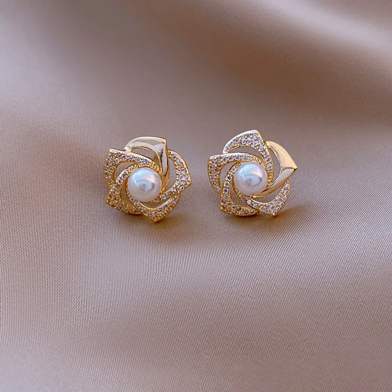 Women's Diamond Rose Pearl Earrings New Niche