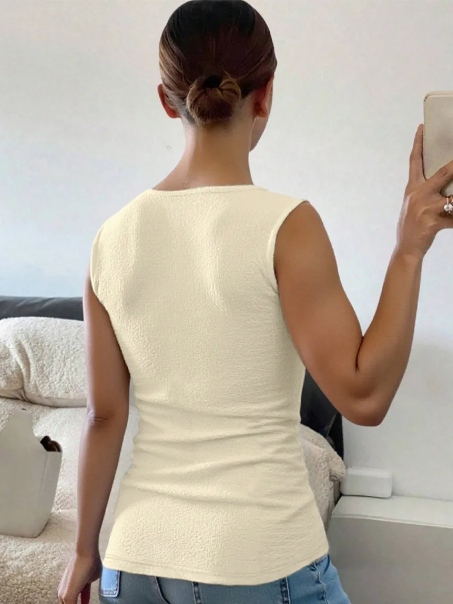 American fashion, this vest offers a clean, minimalist silhouette with a modern twist. The simple yet elegant design makes it suitable for