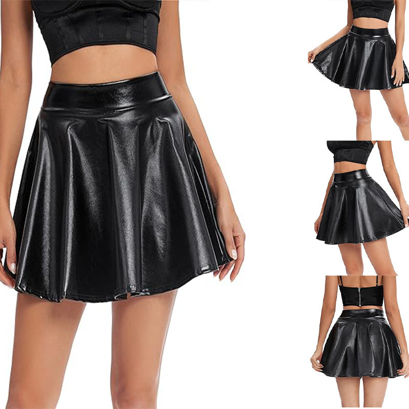 Women's Fashion High Waist Mini Glossy Stretch Flare Skirt