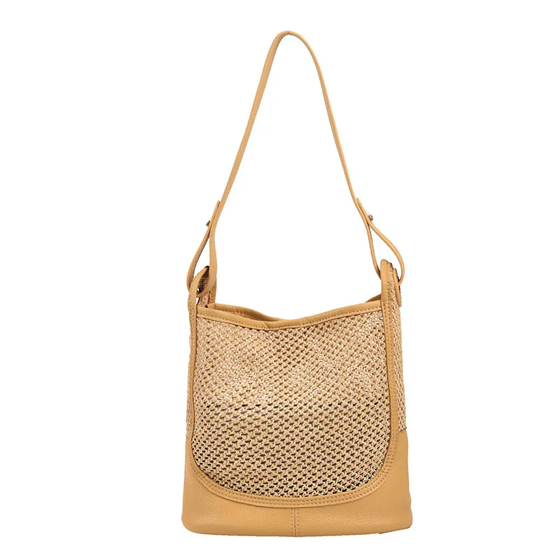 - Woven straw texture for a chic, natural look