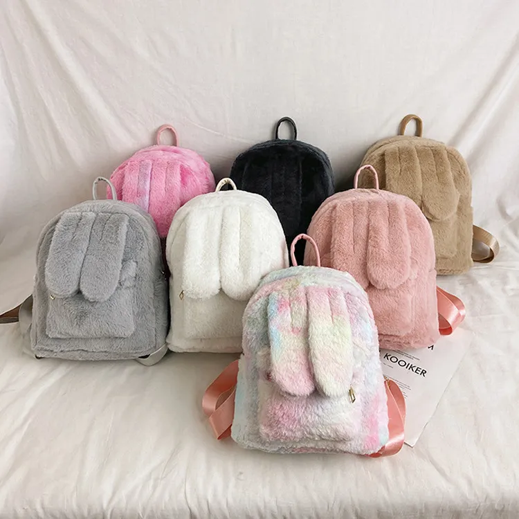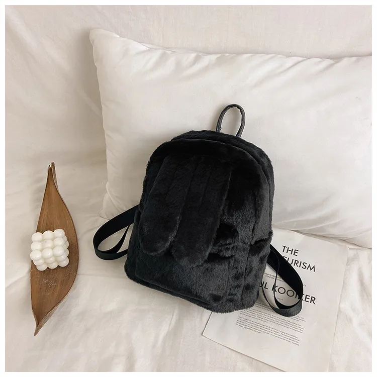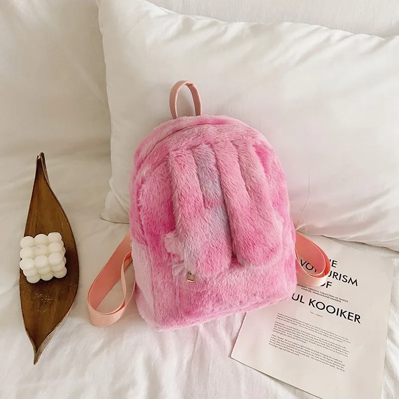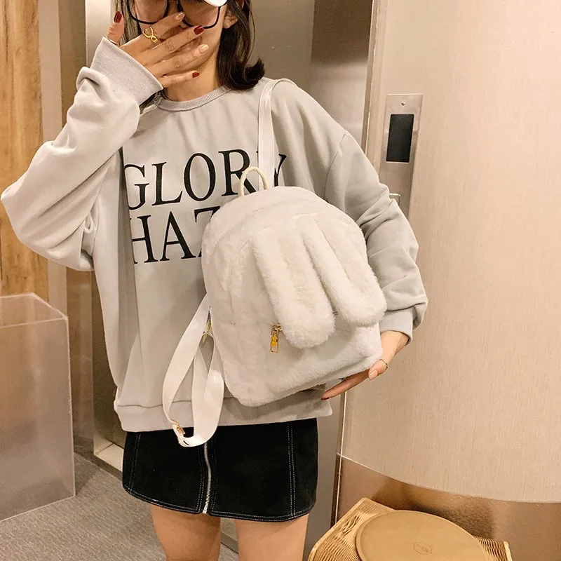 Women's Fashion Plush Cute Rabbit Ears Backpack