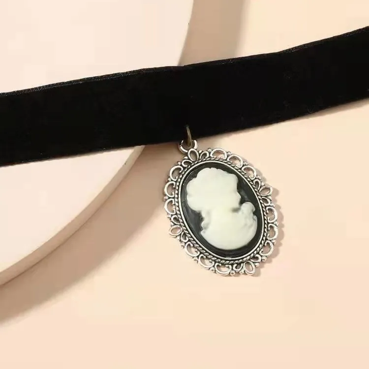 Women's Fashion Vintage Cartoon Princess Beauty Head Pearl Necklace