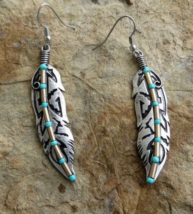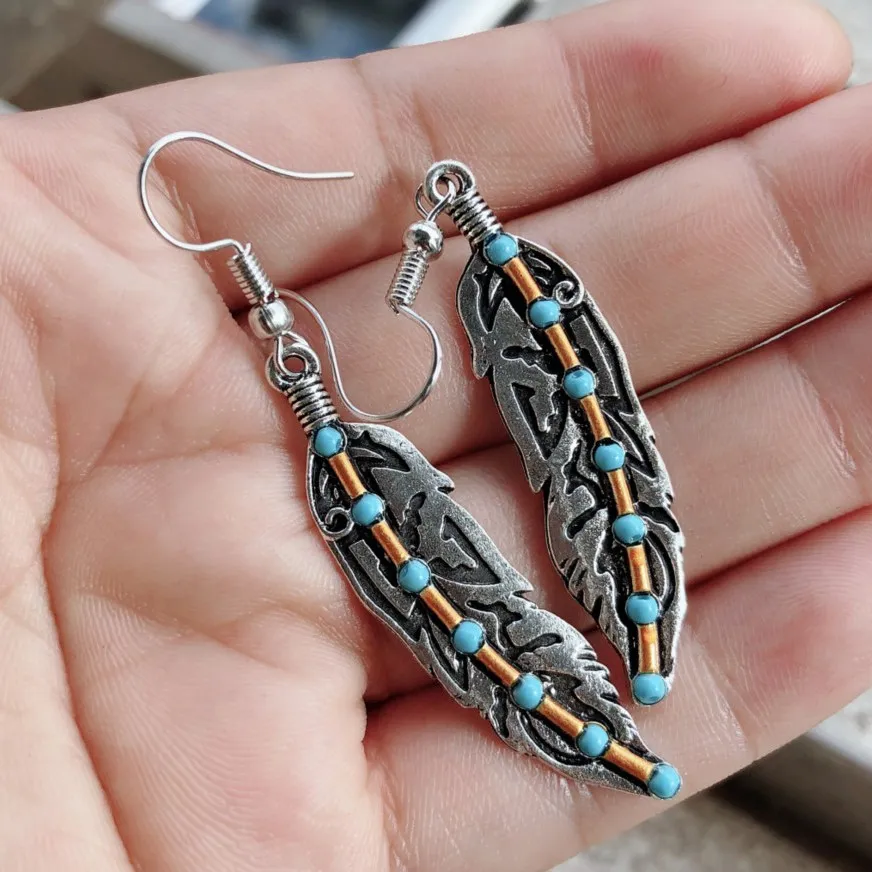 Women's Fashion Vintage Turquoise Feather Earrings – A Timeless Blend of Elegance and Nature