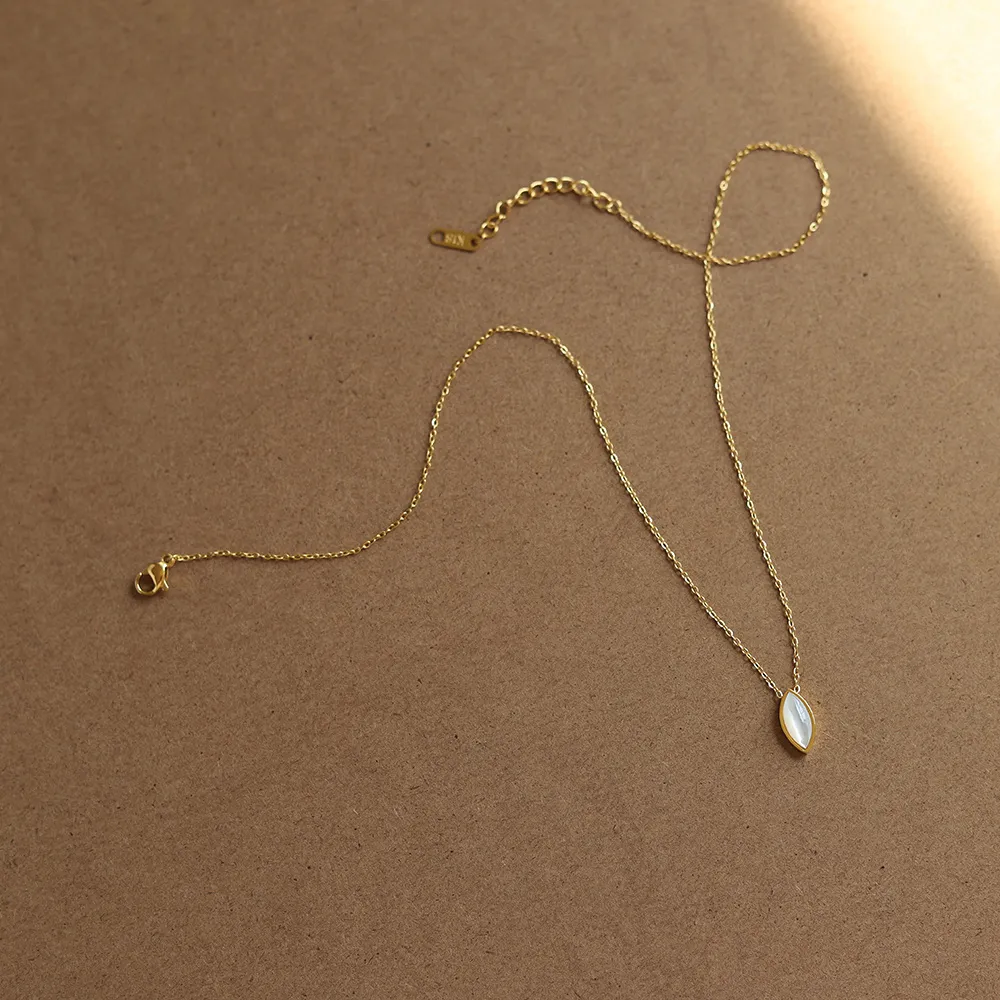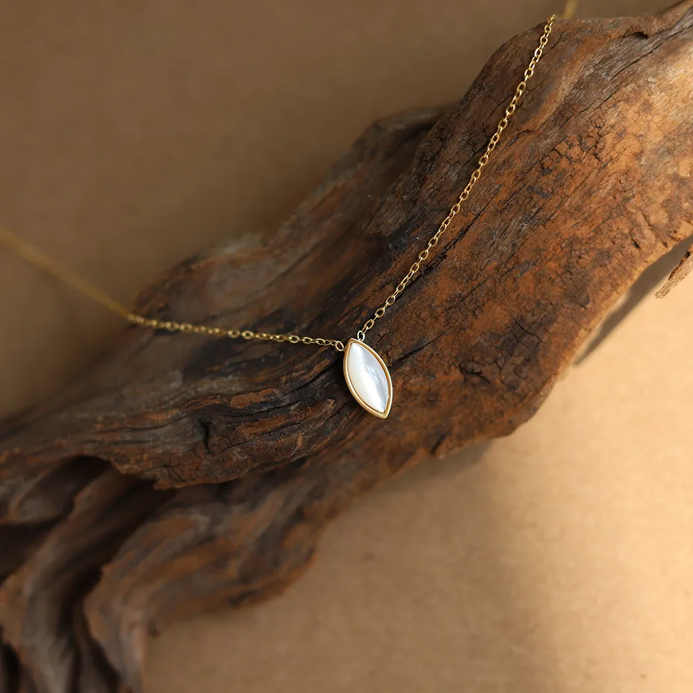 Women's Fashionable Olive-shaped White Shell Pendant Necklace