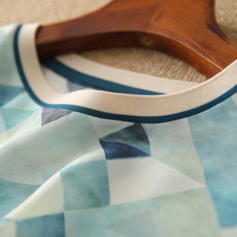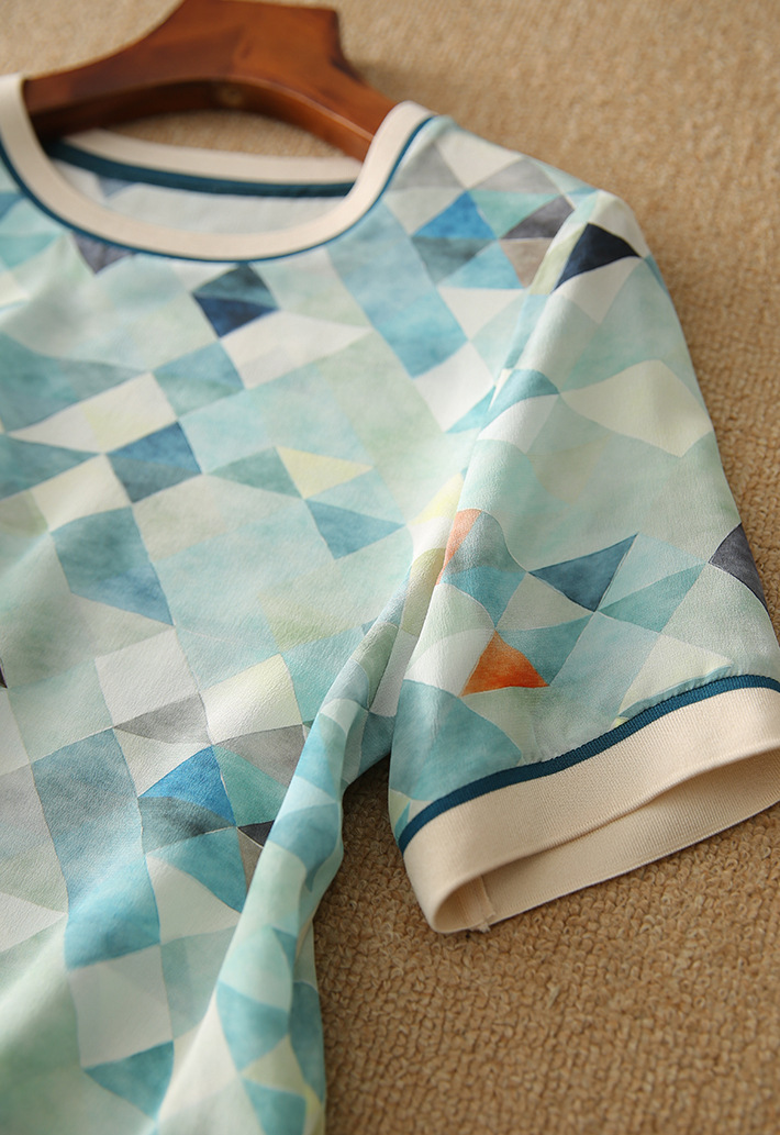 tand out in style with our Women's Geometric Contrast Printed Short-Sleeved T-shirt. Featuring a unique geometric contrast print, this