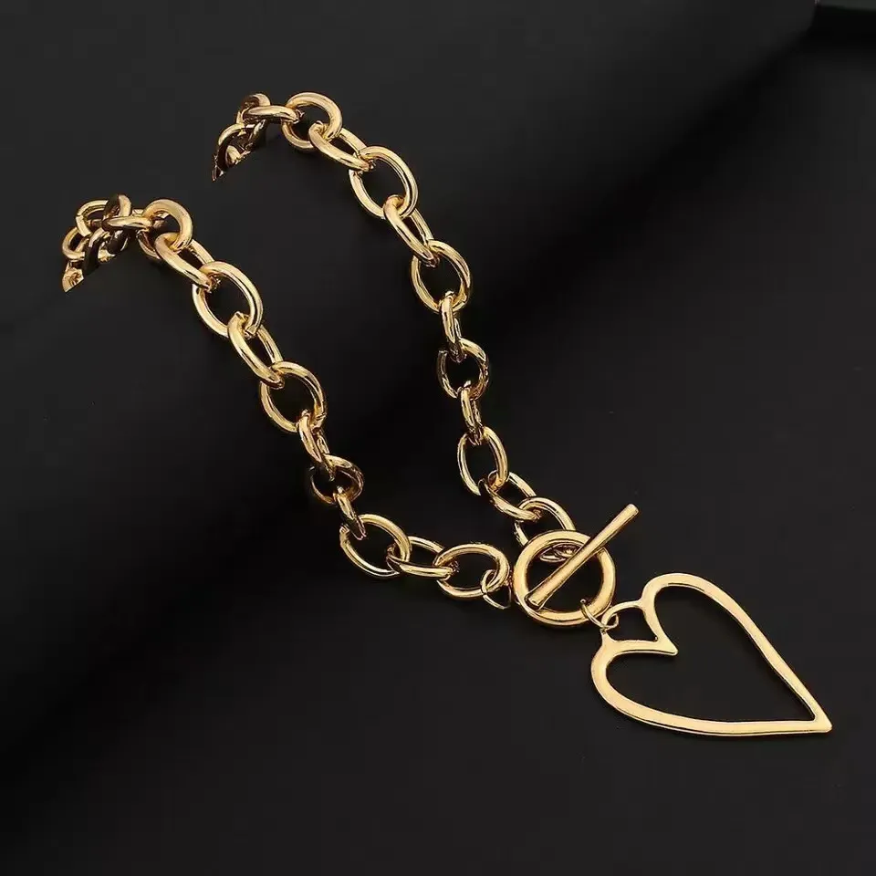 Women's Golden Hollow Heart Pendant Necklace