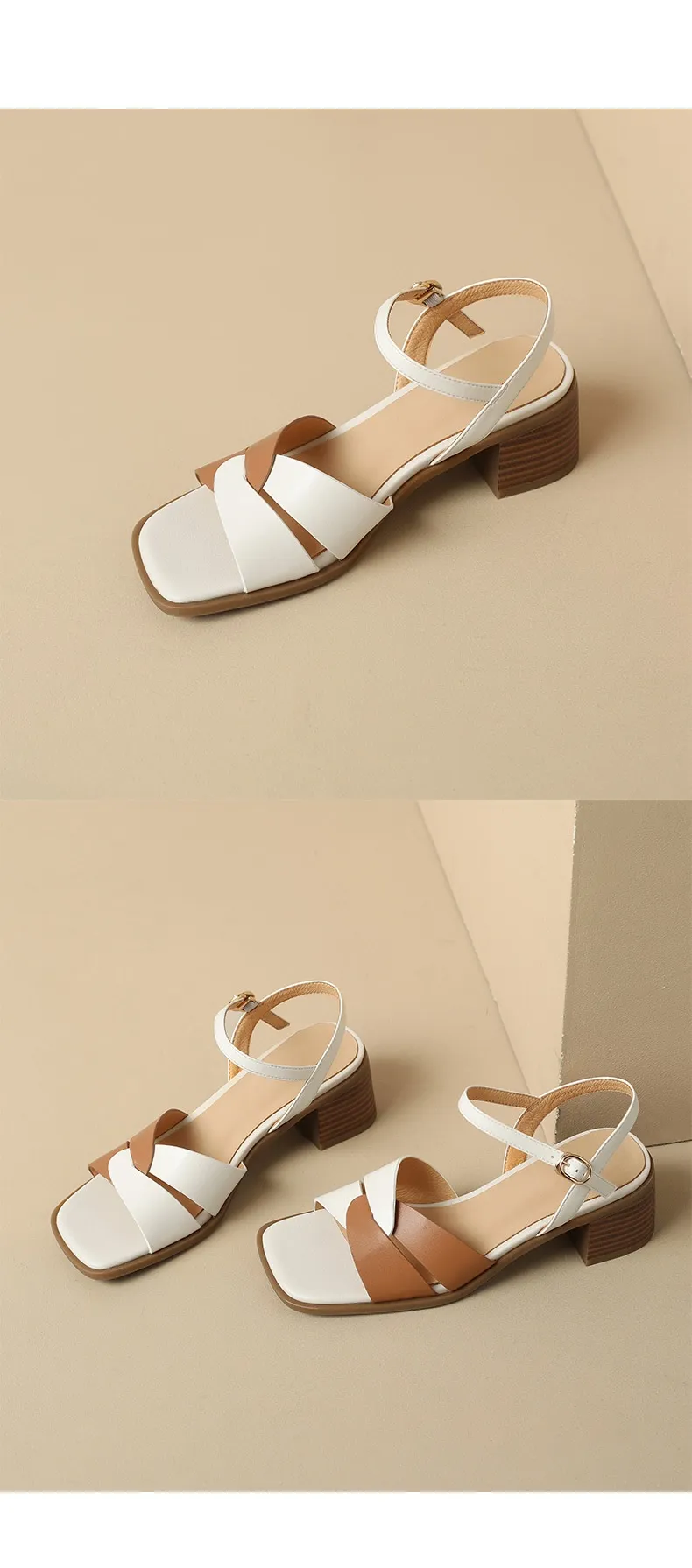 Women's Hollow Color Matching Chunky Heel Sandals With Buckle
