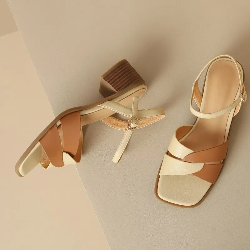 Why Choose the Women's Hollow Color Matching Chunky Heel Sandals with Buckle?