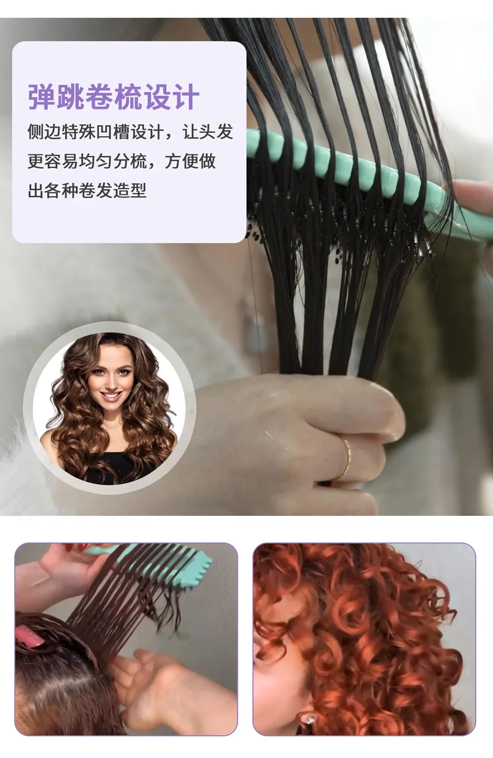 Feature:1. Ergonomic Design: The curl defining brush features an ergonomic handle and strategically placed bristles that effortlessly define, shape, and straighten out curly hair, offering a more convenient styling experience.