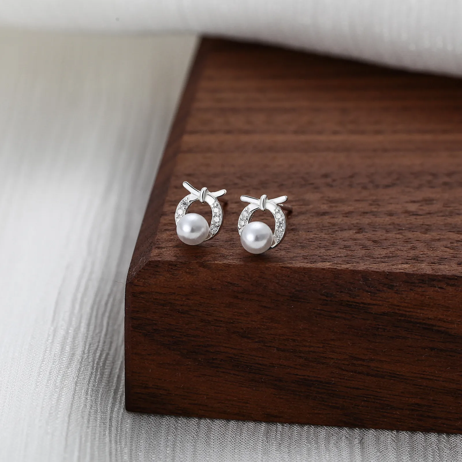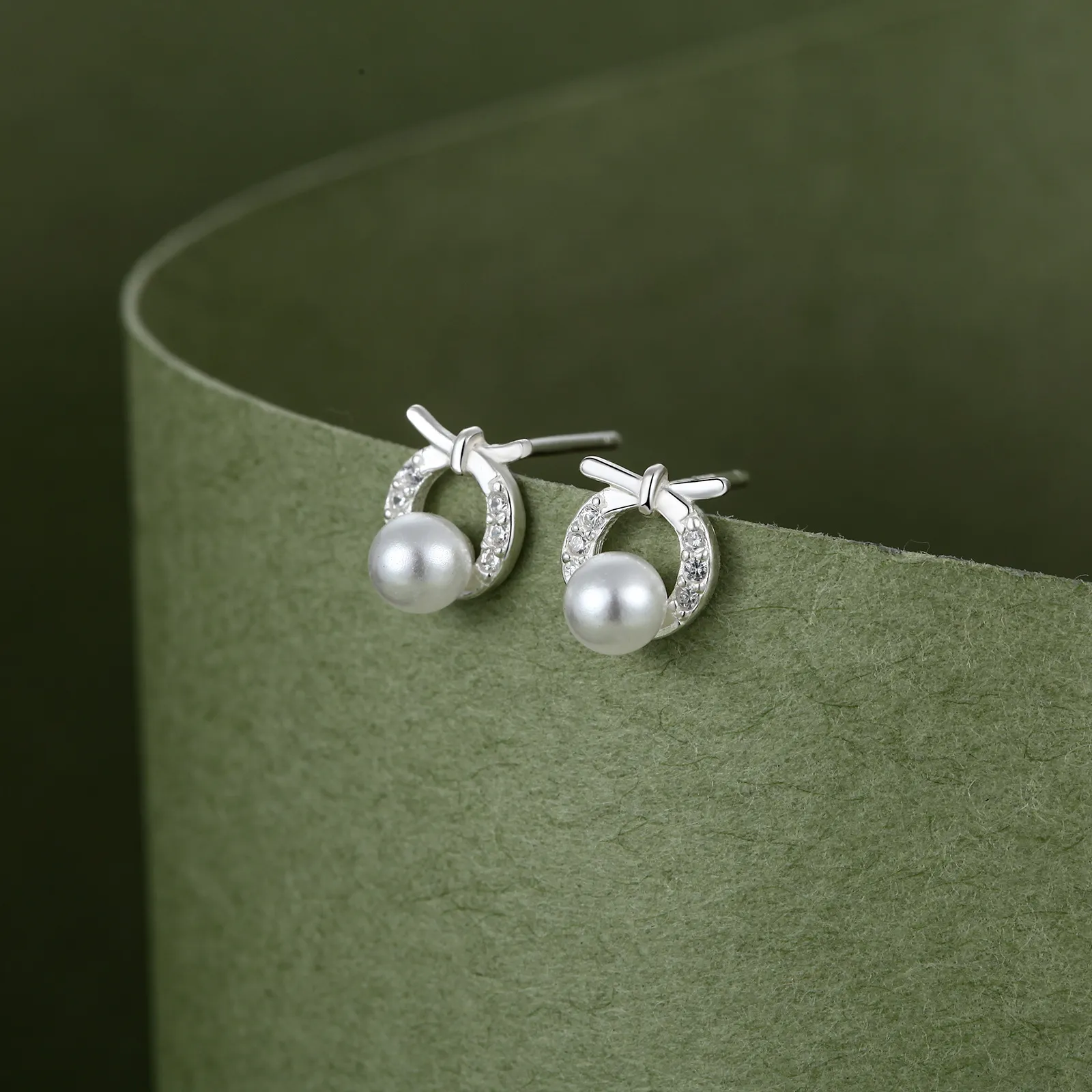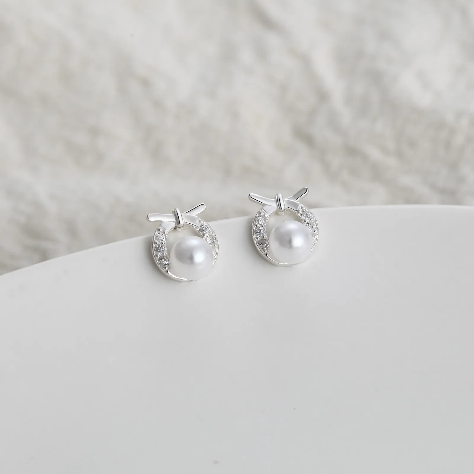 Women's Hollow S999 Sterling Silver Round Bow Stud Earrings