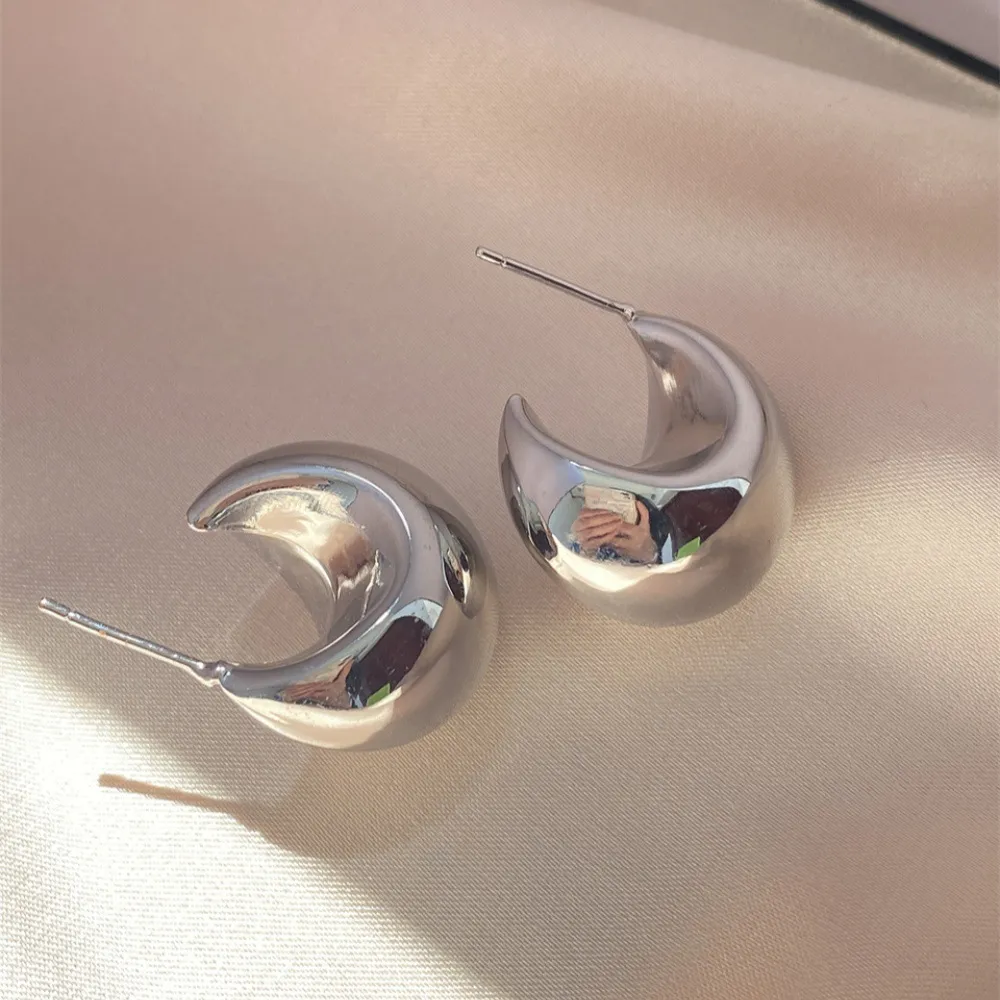 Featuring a thick C-shaped silhouette with an irregular structure, these earrings stand out with a unique retro aesthetic. The geometric design adds a modern twist, making them a conversation piece for any occasion.