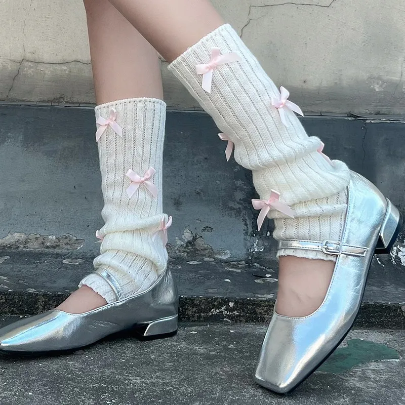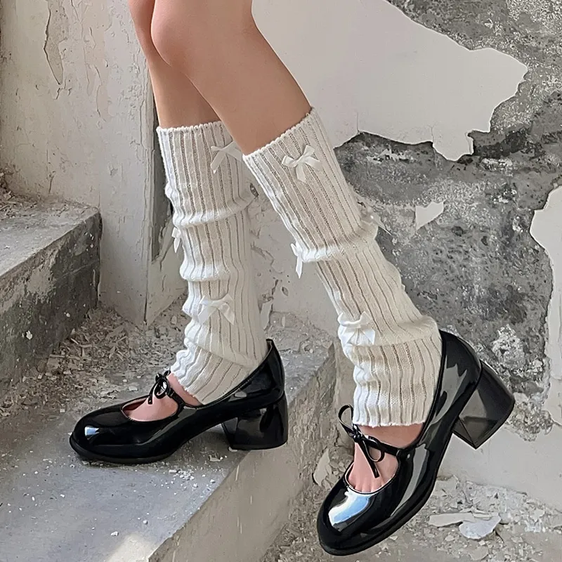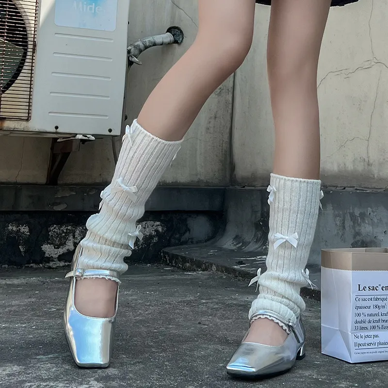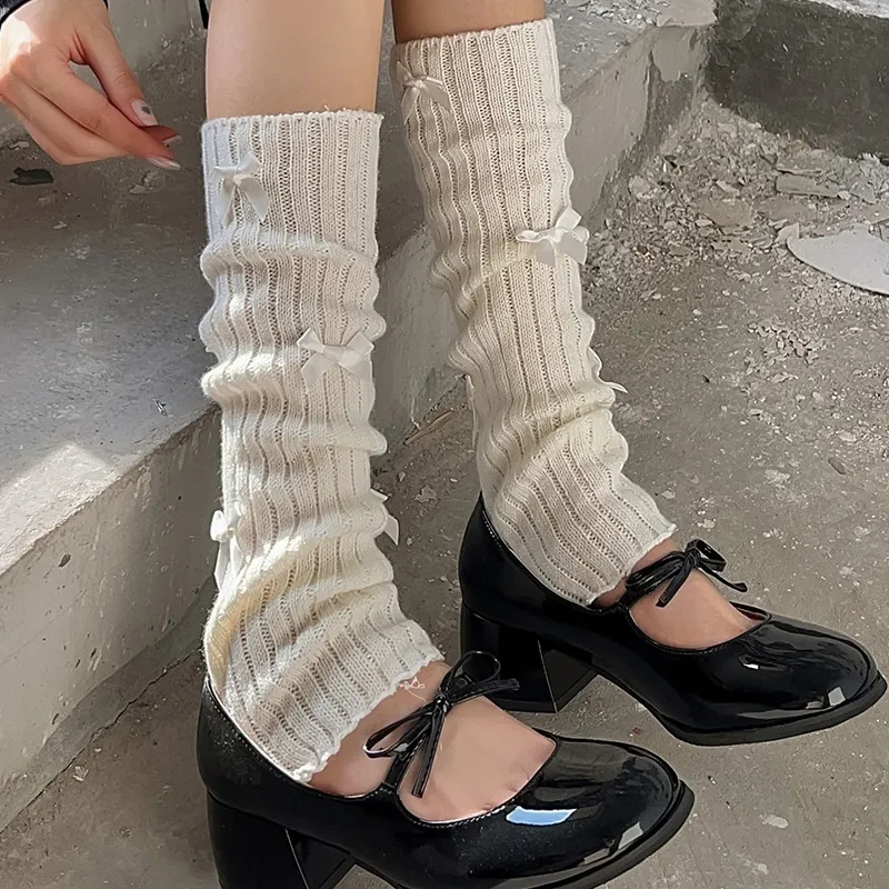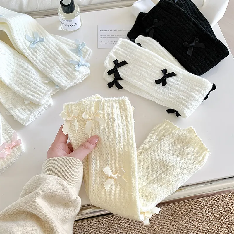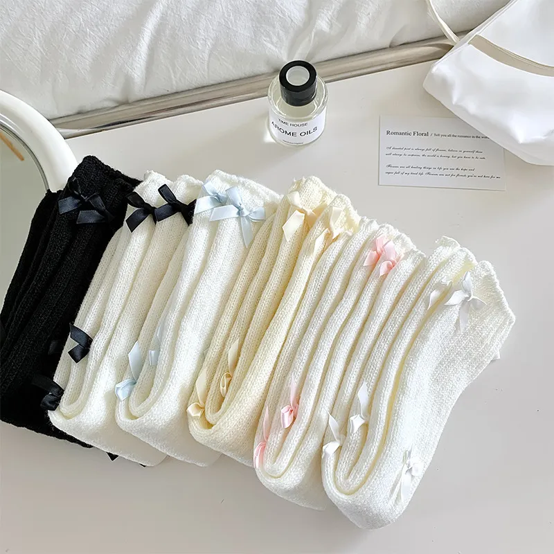 Featuring a soft bow detail and cute bunching style, these socks bring a whimsical yet fashionable touch, making them ideal for pairing with skirts, dresses, or casual streetwear looks.