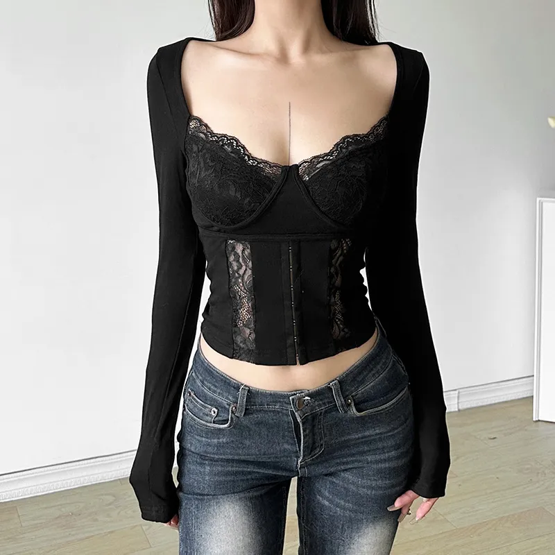 Why You Should Choose the Women's Lace Short Stitching Slim Fit Square Collar Top