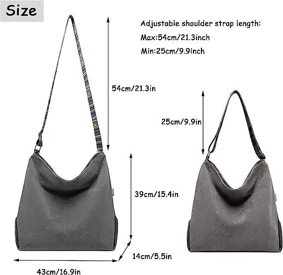 Women's Large Crossbody Fashion Corduroy Retro Hobo Fashion Shoulder Bag