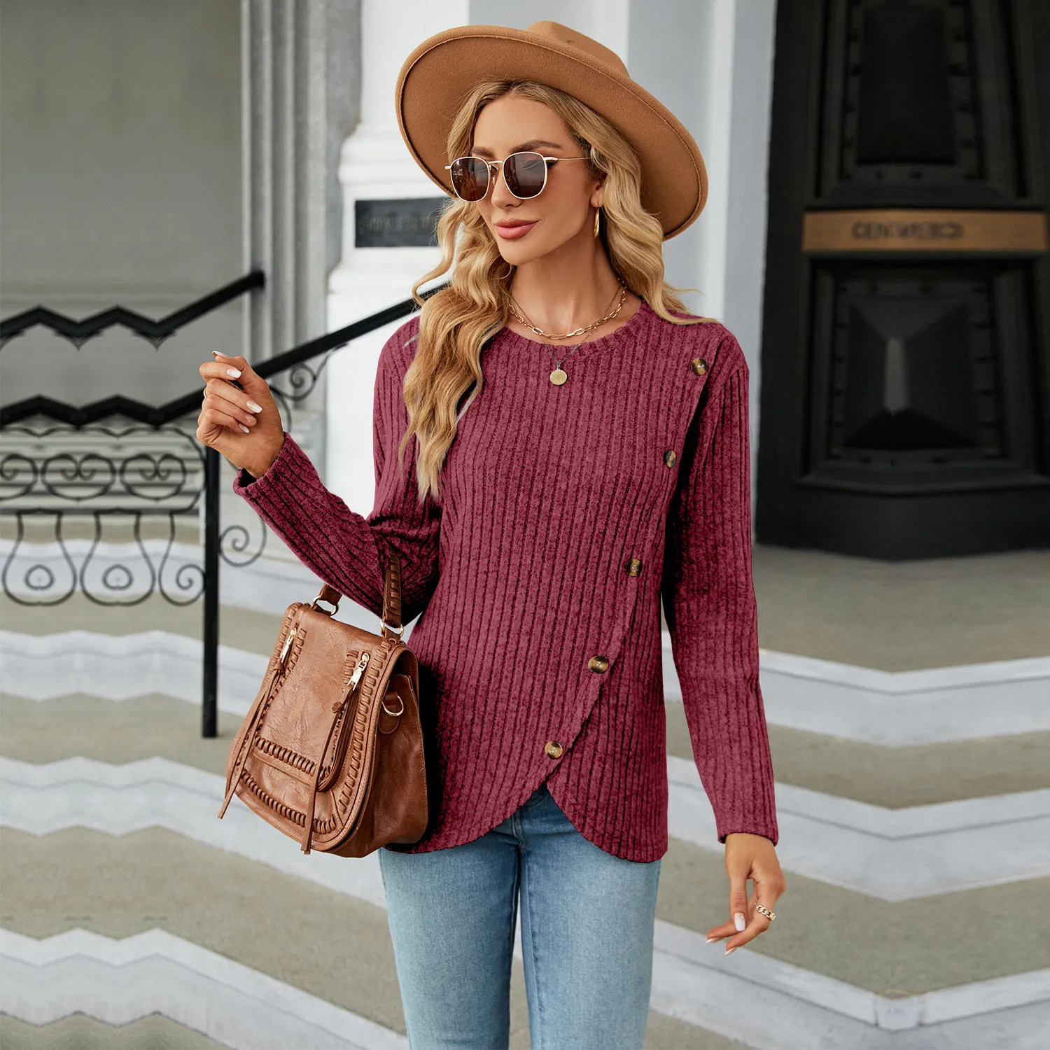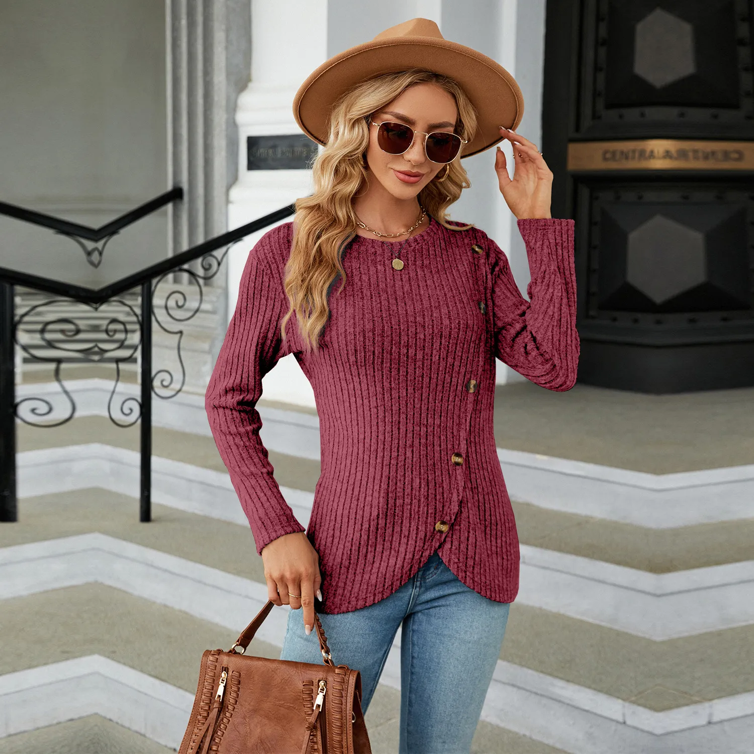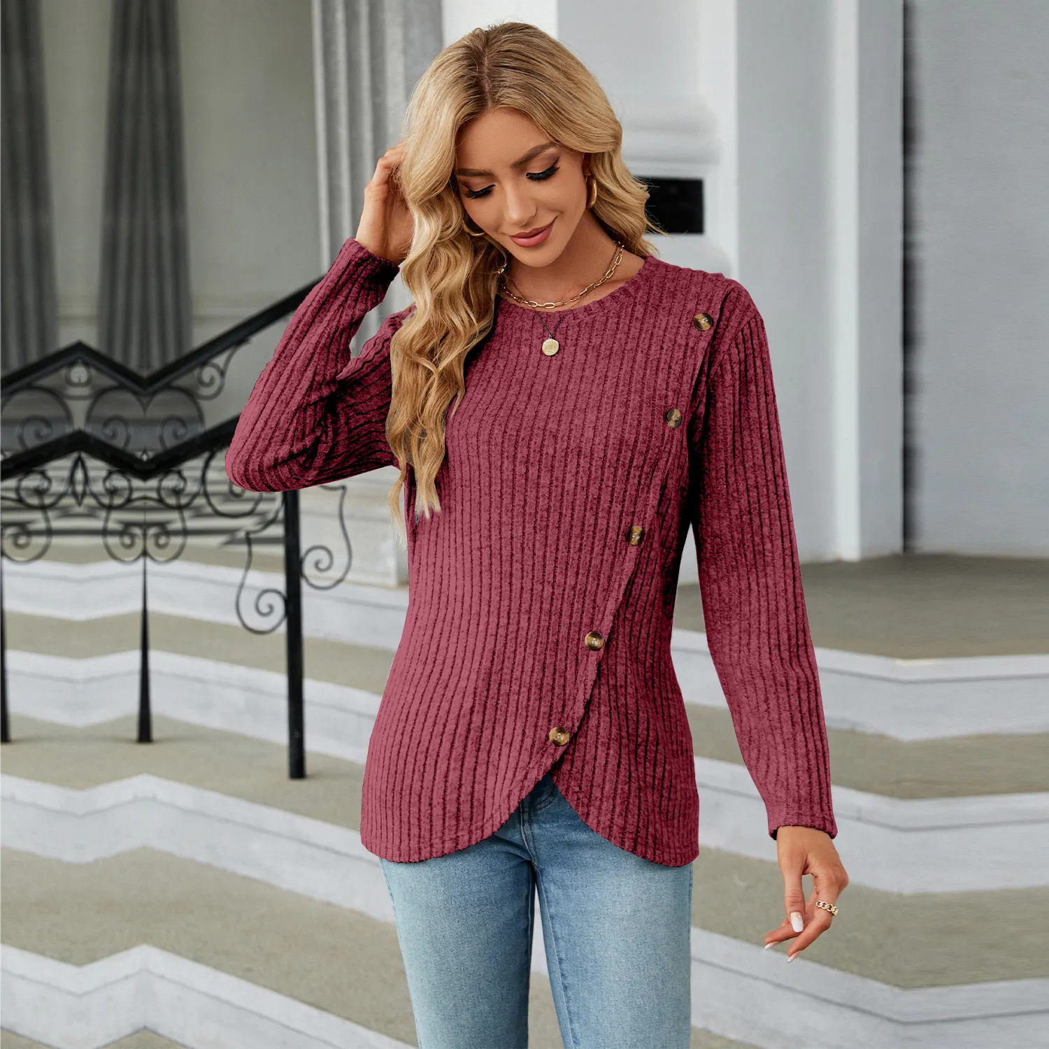 Women's Long-sleeved Round Neck Tulip Hem Bottoming Shirt T-shirt