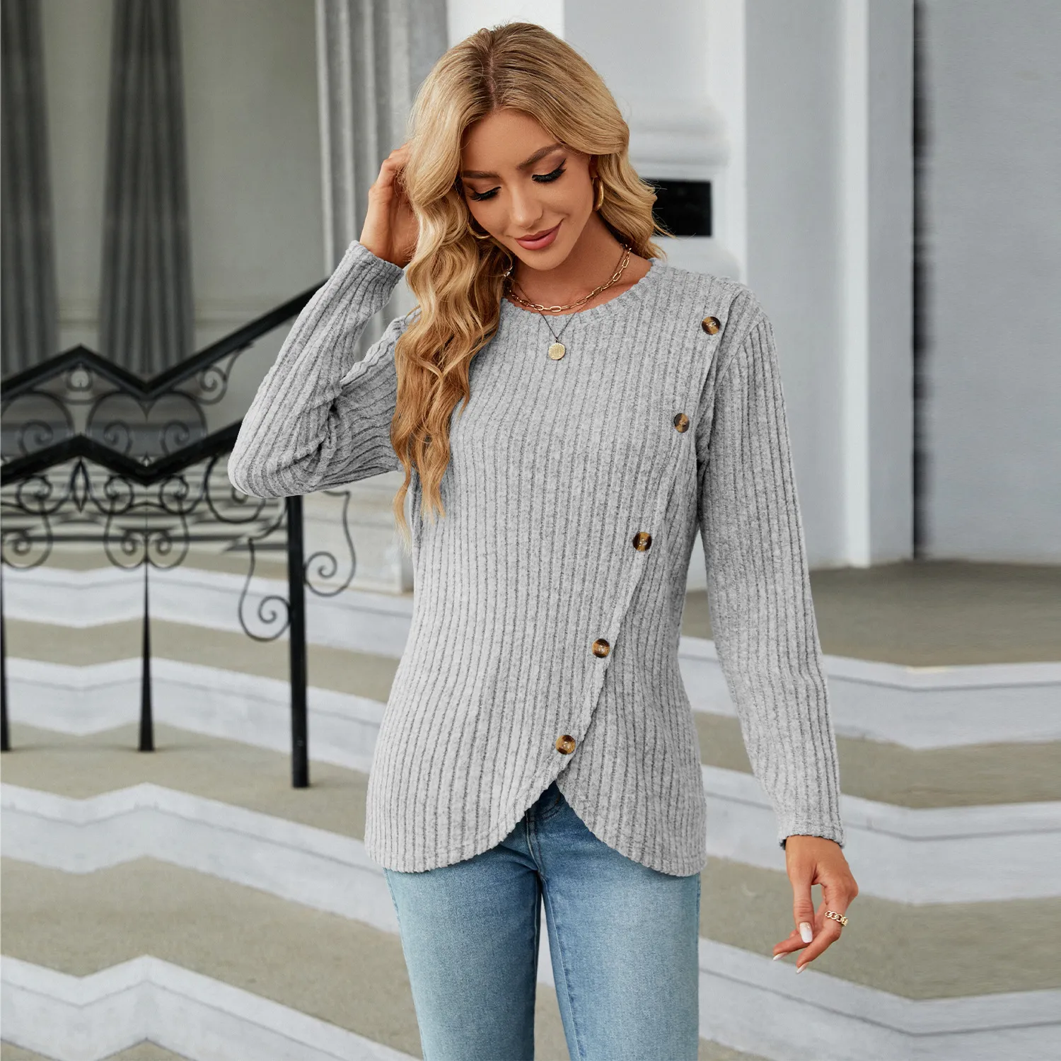 Home › Plants, Gifts, Toys & More › Gift-tree-womens-long-sleeved-round-neck-tulip-hem-bottoming-shirt-t-shirt