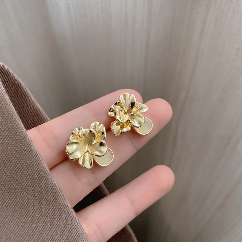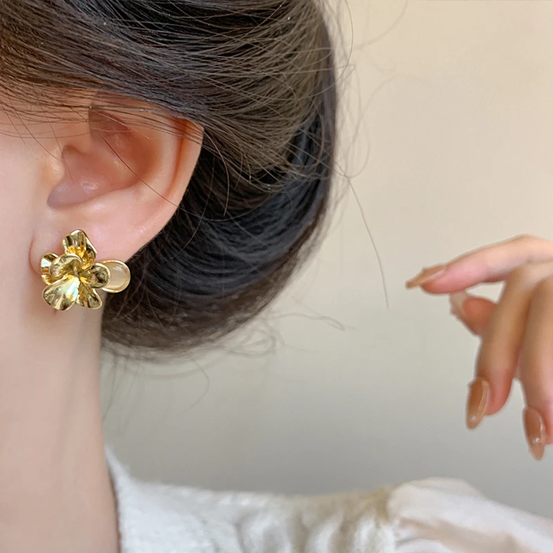 Lightweight and Comfortable: Despite their three-dimensional design, the Golden Petal Ear Clips