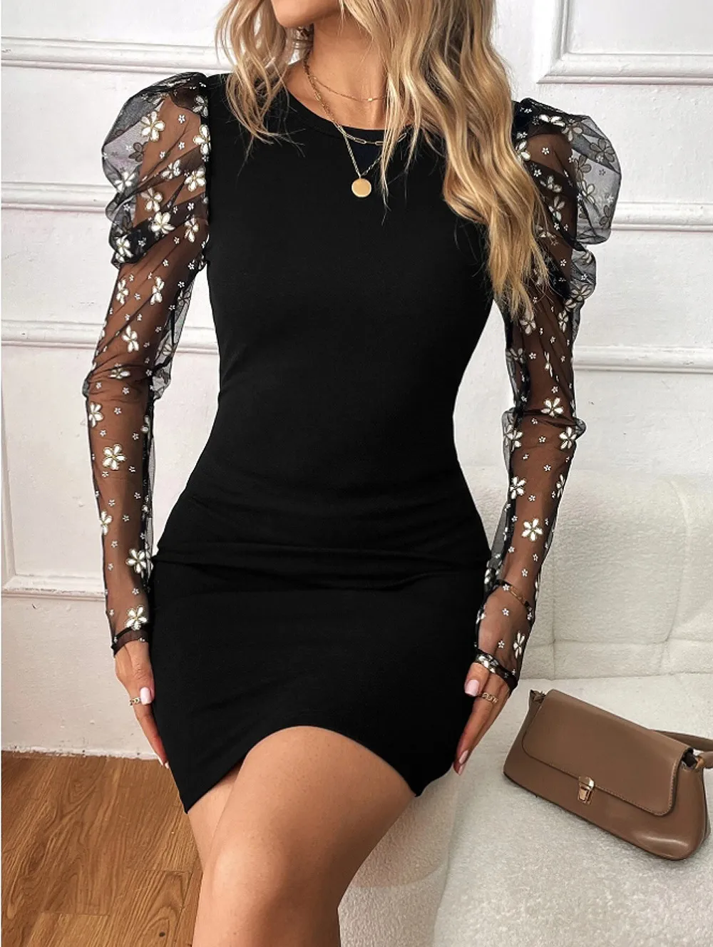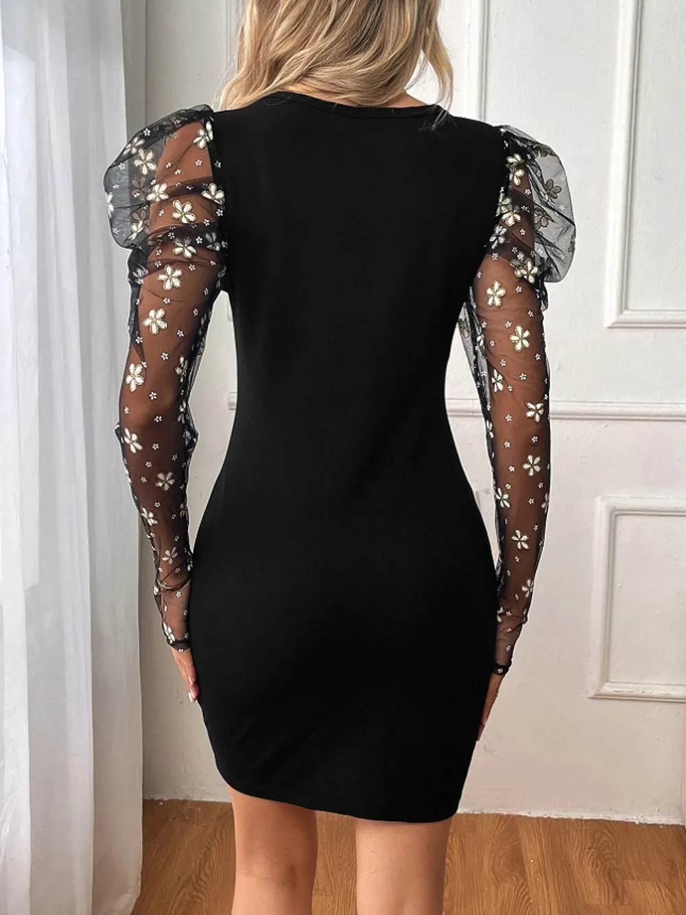 The semi-transparent mesh sections offer a glimpse of skin, creating a chic and stylish look perfect for evening wear or special events.