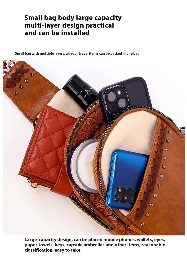 Crafted from durable, lightweight fabric, the bag features multiple compartments and secure zip closures, ensuring you have ample space for essentials like your phone, wallet, keys, and cosmetics. Its adjustable strap allows for a customized fit, while the ergonomic design ensures comfort during extended wear. With a smooth finish and stylish details, this chest bag complements both casual and semi-formal looks, making it a go-to accessory for women who love style and convenience.