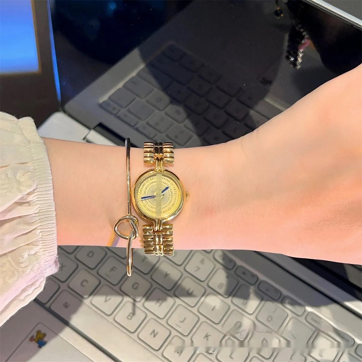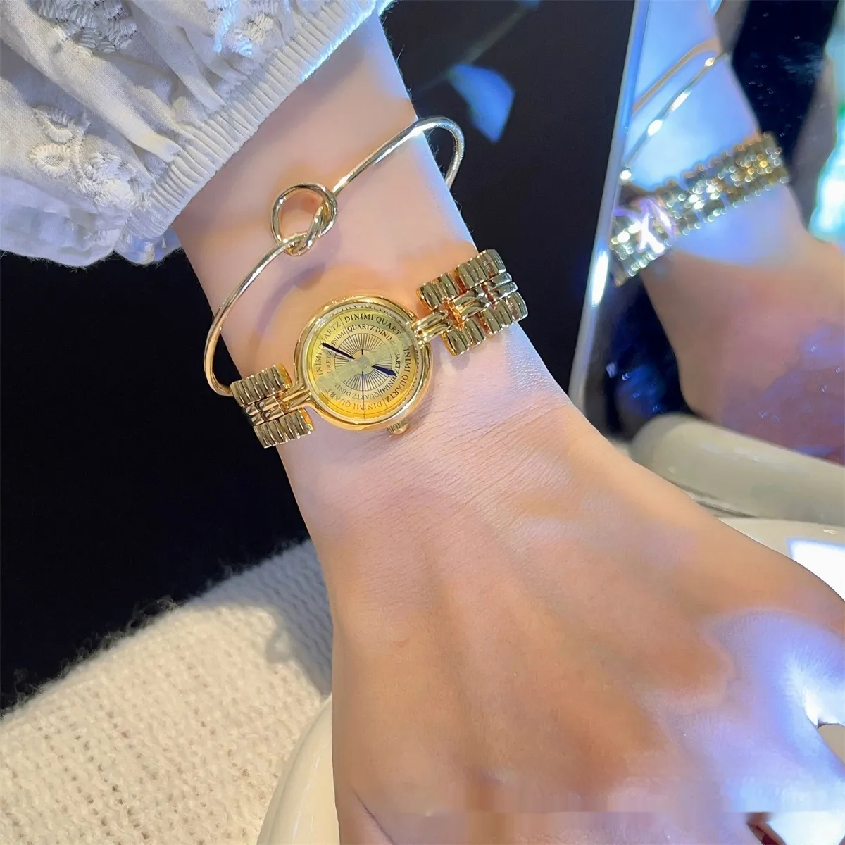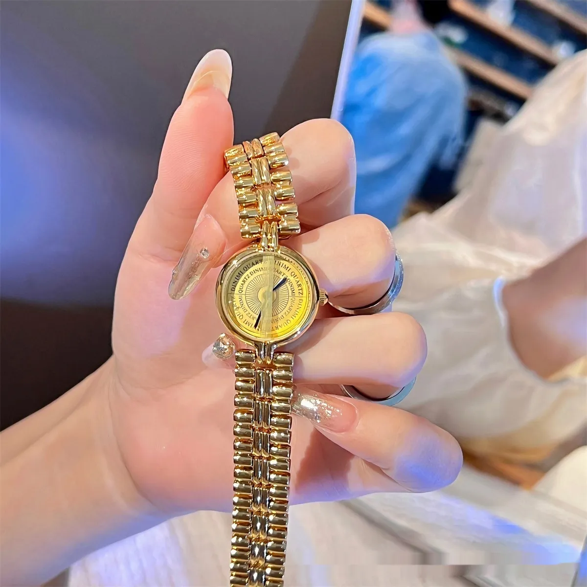 - Clean Regularly: Wipe the watch with a soft, dry cloth to remove fingerprints, dust, and dirt. For the gold chain strap, use a jewelry polishing cloth to maintain its shine.