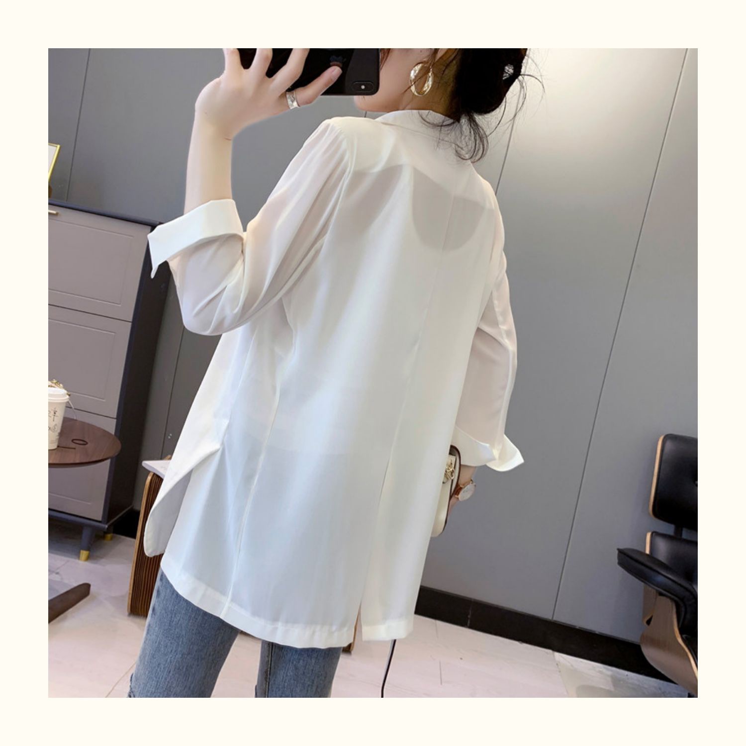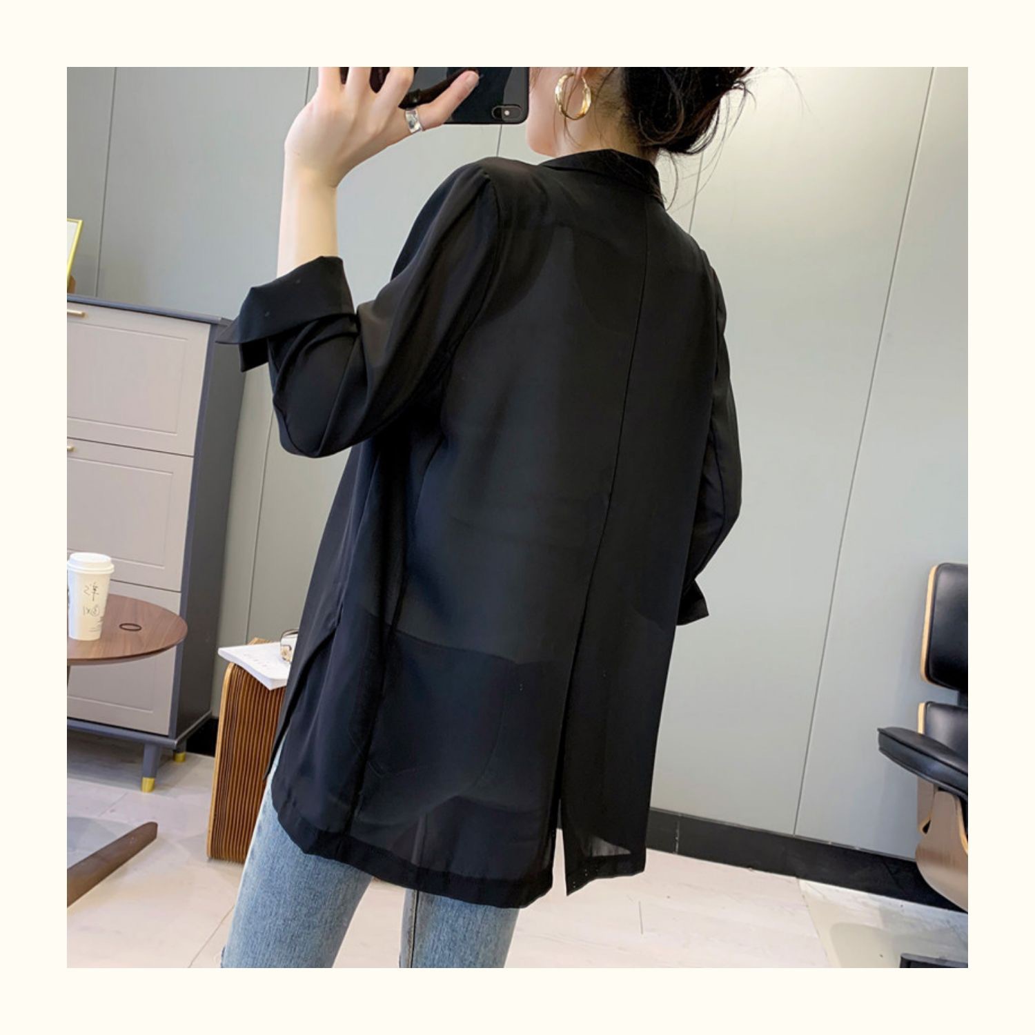 Embrace effortless style and comfort with our Women's Mid-Length Chiffon Cardigan. Designed to keep you cool and covered, this lightweight cardigan features a flowing chiffon fabric that's perfect for layering over your favorite summer outfits. The loose fit provides ample breathability and movement, ideal for both sunny days and breezy evenings. Whether you're dressing up for the office or dressing down for a casual day out, this versatile air conditioning jacket is your go-to for adding a touch of sophistication to any look.Size: