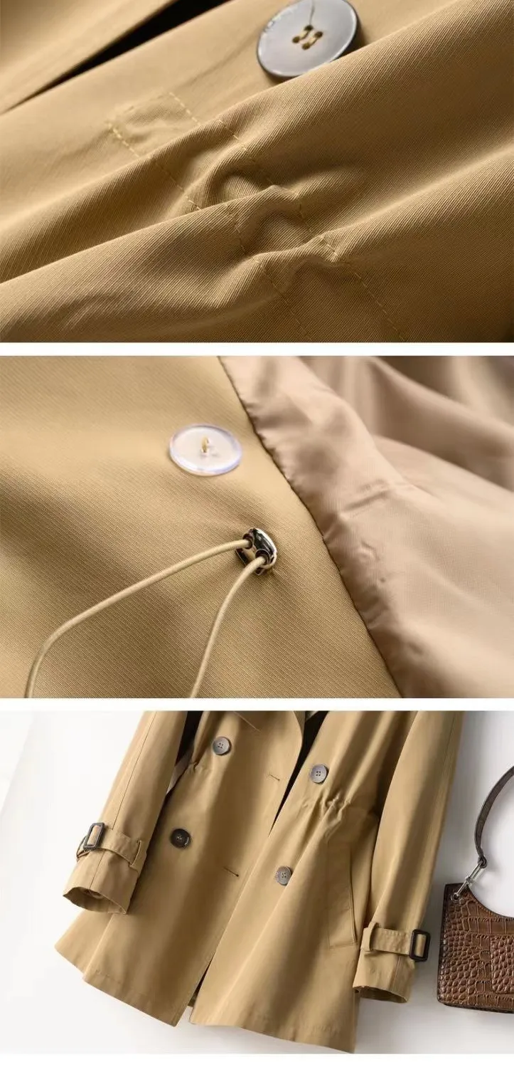 Women's Mid Length Waist Wrap Coat Versatile Windbreaker