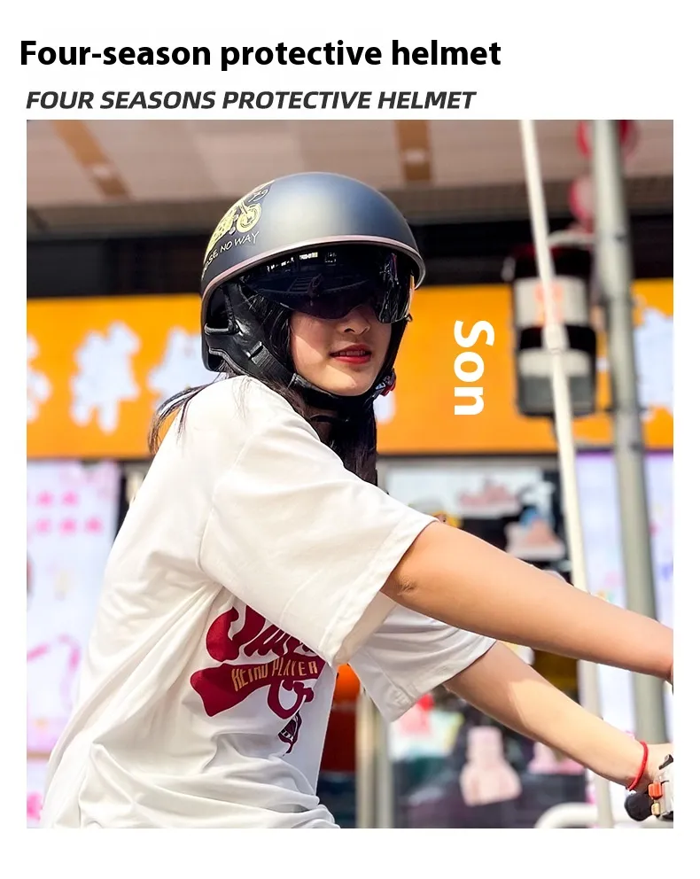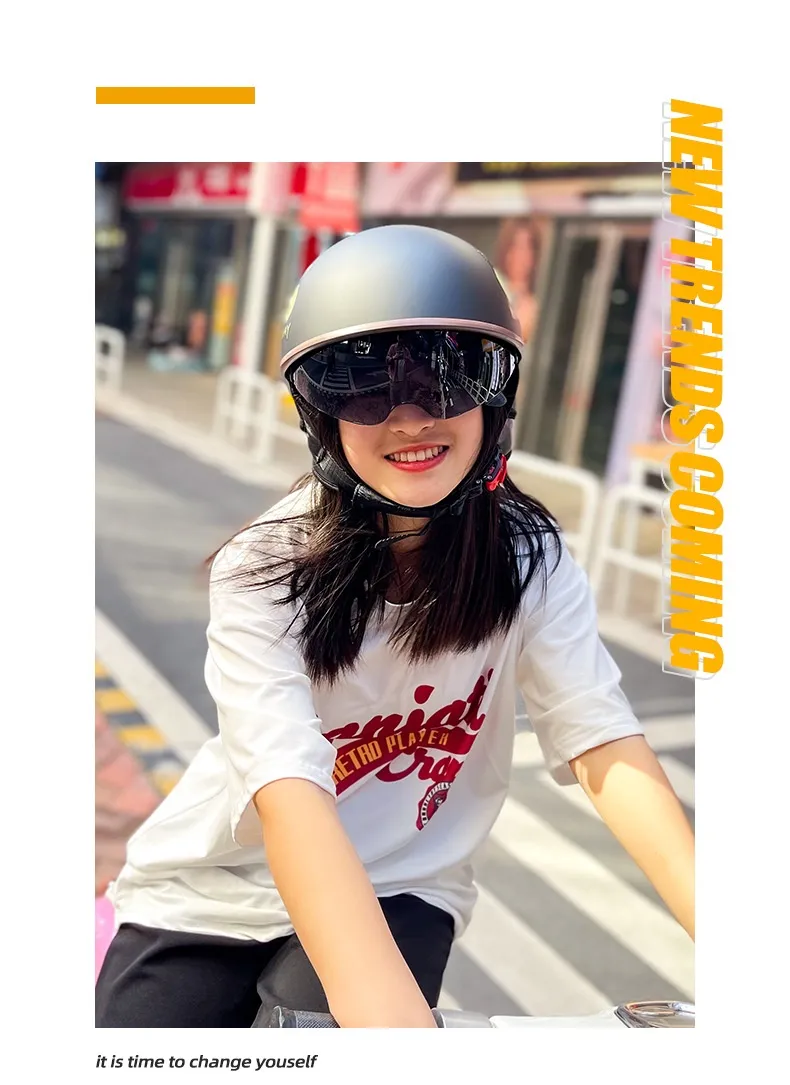 A women’s motorcycle half helmet is the perfect balance of protection, comfort, and style. Whether you're a casual rider or a seasoned motorcyclist, a half helmet provides essential safety without compromising on comfort or aesthetics. Its lightweight design, adjustable fit, and stylish look make it a popular choice for riders who want to feel secure and fashionable on the road.
