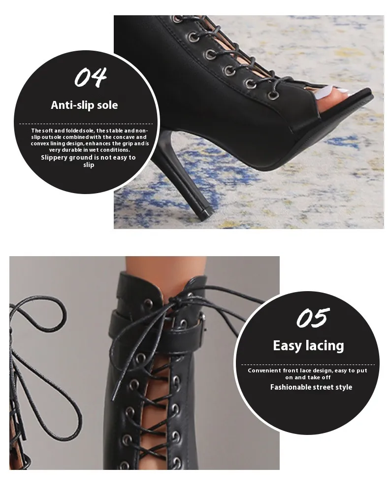 Women's Peep Toe High Heel Pumps Shoes Fashion Lace-up Buckle Sandals With Back Zipper Design