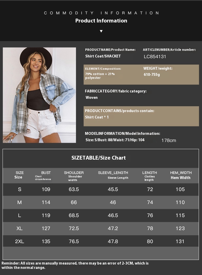 Home › Plants, Gifts, Toys & More › Gift-tree-womens-plaid-patchwork-tassel-flap-pocket-denim-jacket