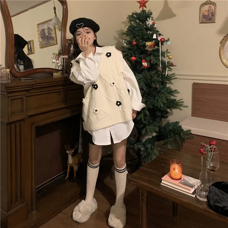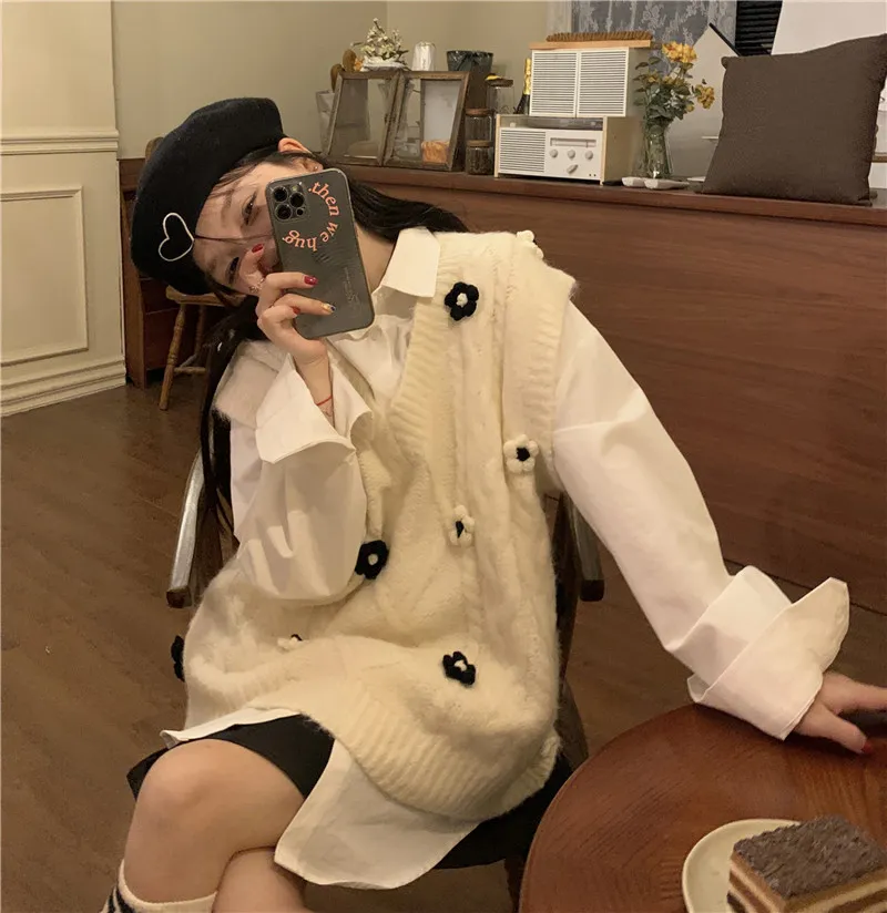 Its neutral color palette allows for easy mixing and matching with other wardrobe staples. Whether you’re pairing it with jeans, skirts, or trousers, the vest adds a touch of preppy elegance to any ensemble. The clean, simple lines of the vest ensure that it complements a wide variety of clothing styles, making it a versatile piece that works with almost everything in your closet.