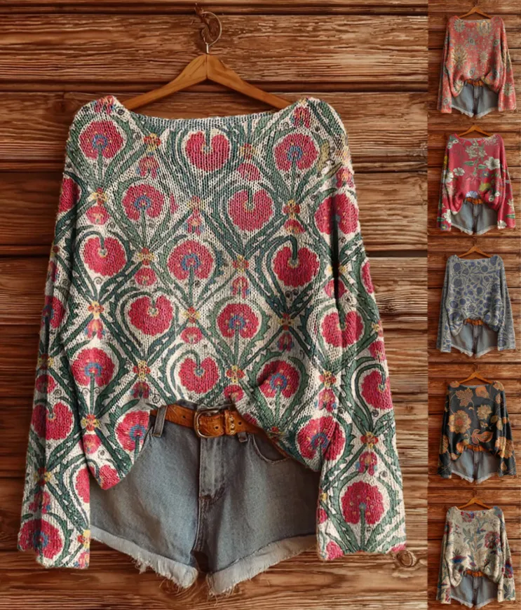 Women's Retro Printed Top, Loose Fit Retro Top, Brushed Long-Sleeved Top, Vintage Print Women's Shirt, Casual Retro Style Top, Comfortable Loose Fit Shirt, Women's Printed Long-Sleeve Top, Retro Long-Sleeved Shirt, Cozy Brushed Fabric Top, Timeless Women's Retro Top, Relaxed Fit Printed Top, Vintage Style Long Sleeve Shirt, Soft Brushed Fabric Women's Top, Retro Style Women's Sweater, Casual Women's Brushed Top.