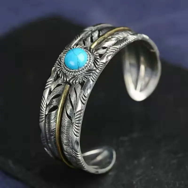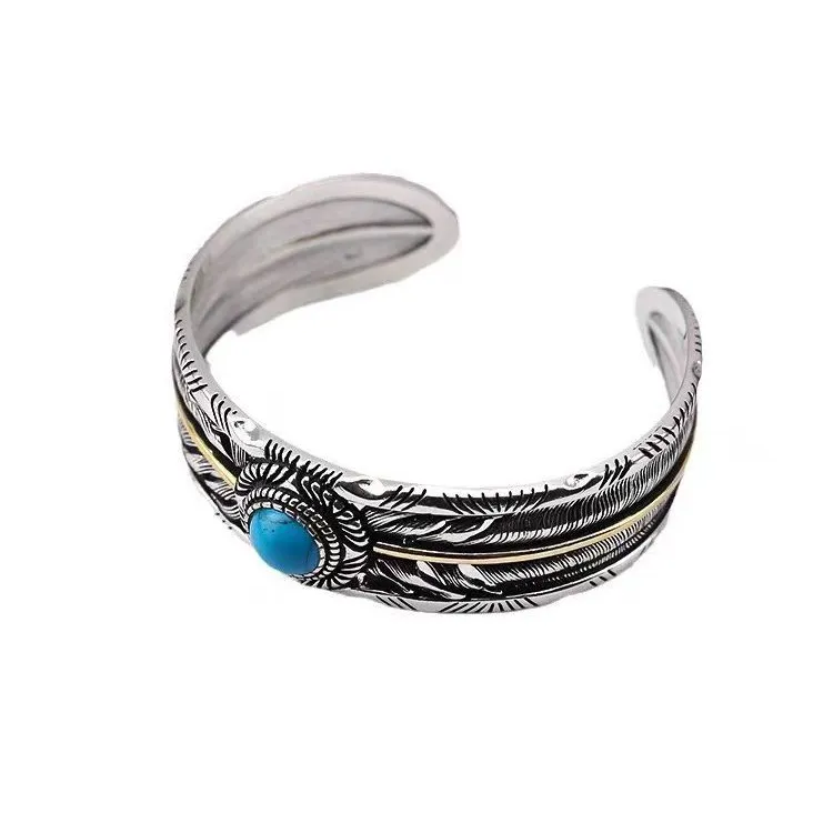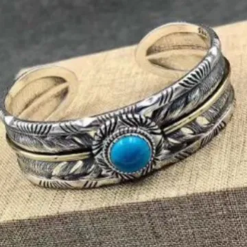 Home › Plants, Gifts, Toys & More › Gift-tree-womens-retro-feather-turquoise-open-bracelet