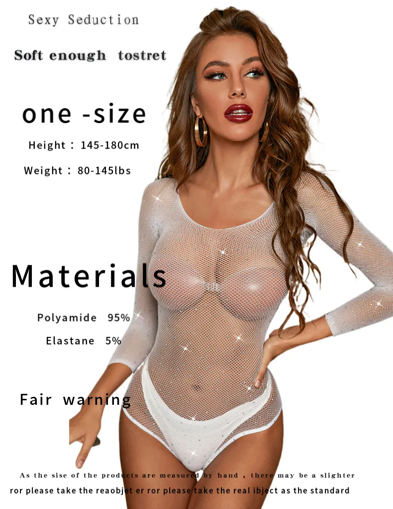 Crafted from high-quality materials, this bodysuit is designed to retain its sparkle and softness even after multiple washes. The durable construction ensures that the rhinestone detailing stays securely in place, and the mesh fabric maintains its shape. This durability makes it a great investment in your lingerie collection.