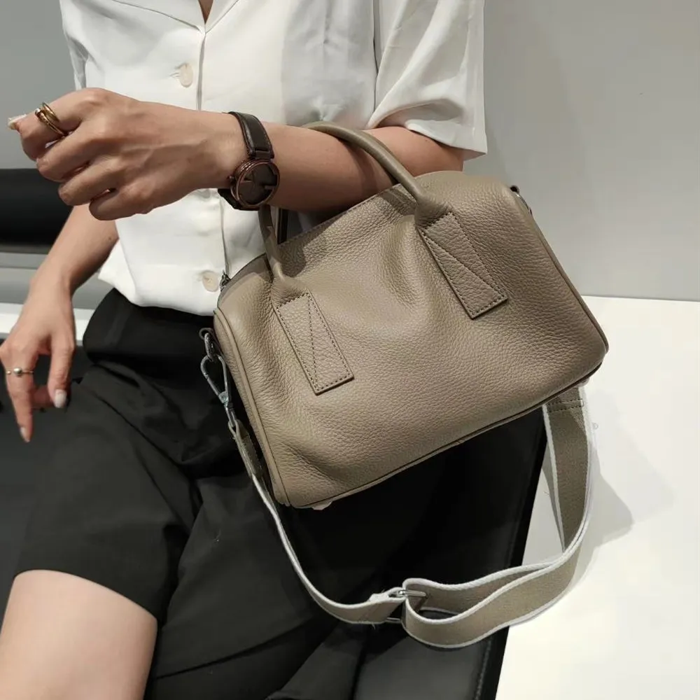 Women's Simple First Layer Cowhide Soft Pillow Handbag