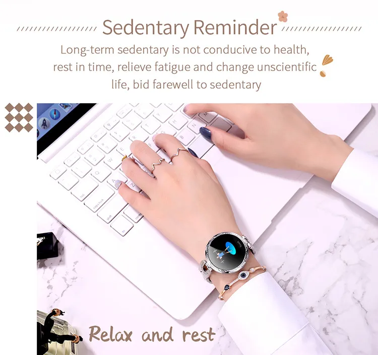 This smart bracelet integrates seamlessly into your daily routine, offering features such as step tracking, heart rate monitoring, sleep tracking, and notifications for calls and messages. Perfect for women who value both form and function, this wearable ensures you never miss a call or message while helping you monitor key health metrics to stay on track with your wellness goals.
