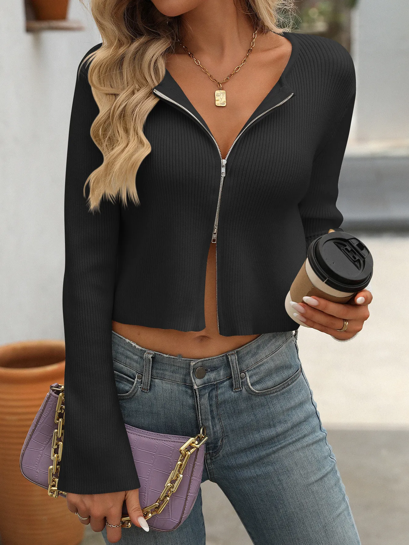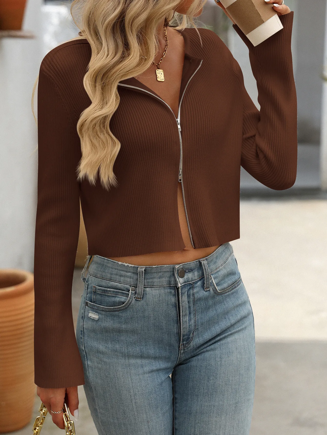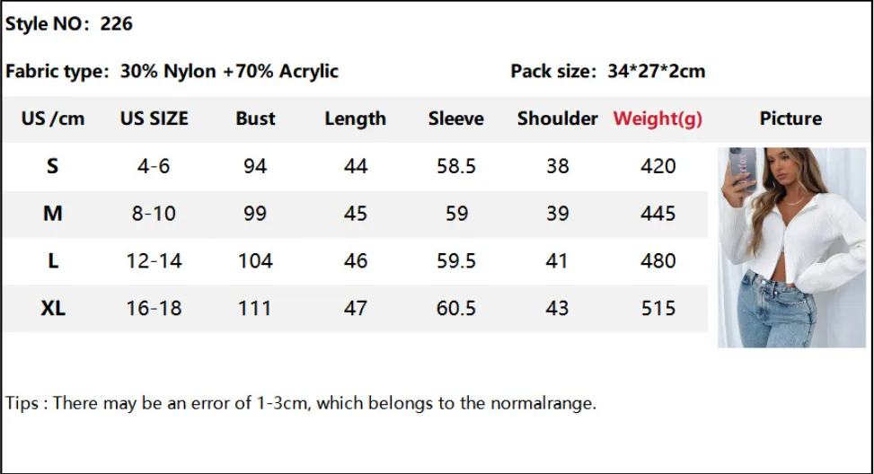 - As shown / Casual / Plain / Zipper / Collar / cropped / Long Sleeve / Regular Sleeve / Fit / Non-Stretch / Fabric / Polyester / Machine wash or professional dry clean