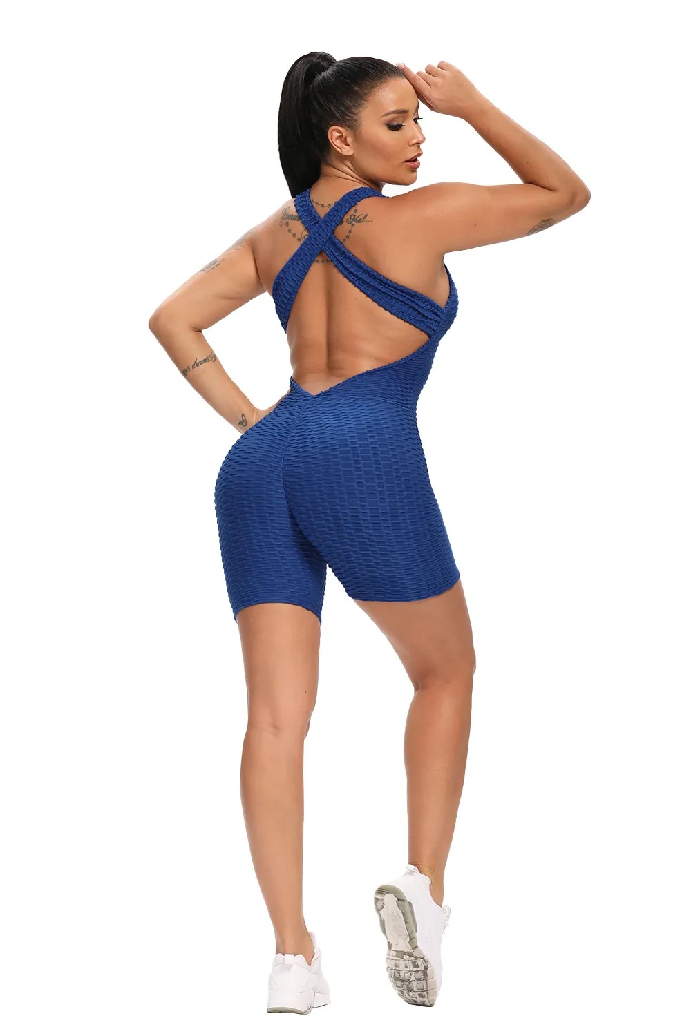The jacquard fabric not only adds a textured, stylish look but also offers excellent stretch and durability, ensuring that these one-piece shorts maintain their shape and fit, wash after wash. The high waist design provides a secure and flattering fit, offering core support and a streamlined silhouette that enhances your natural curves. The one-piece construction allows for unrestricted movement, making it perfect for dynamic exercises and training routines. The moisture-wicking properties of the fabric ensure that sweat is quickly drawn away from the skin, promoting dryness and comfort throughout your workout.