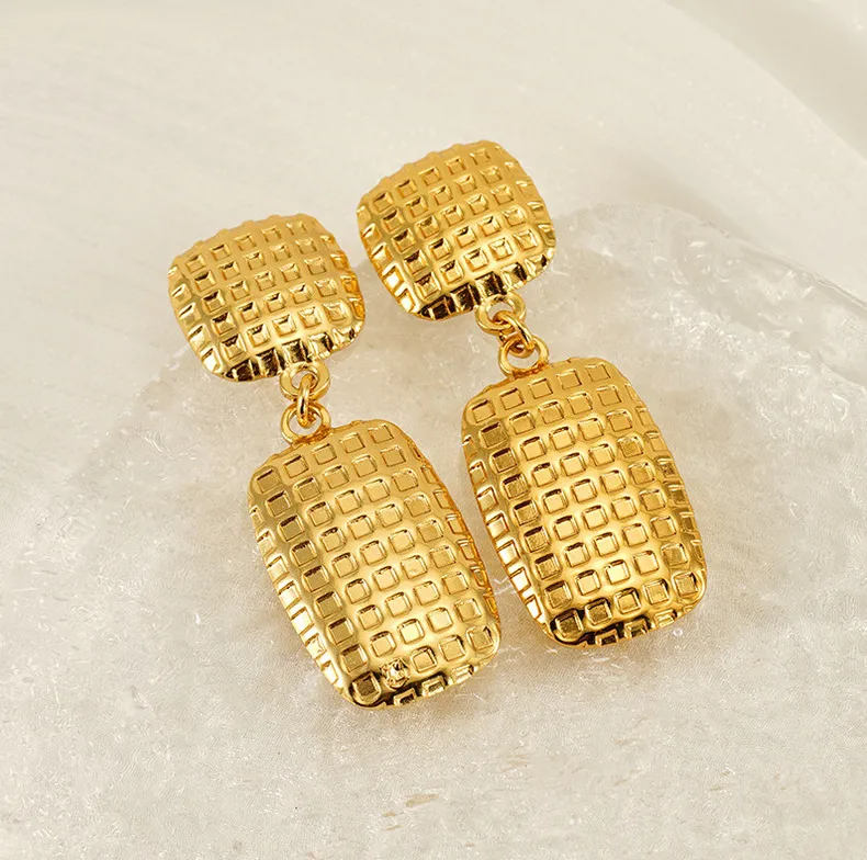 Women's Stainless Steel Square Textile Stud Earrings Retro