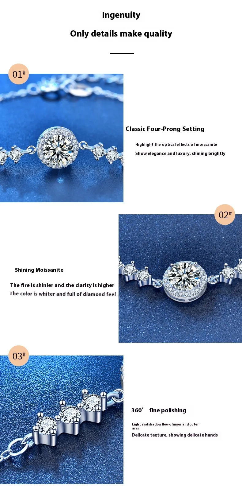 The bracelet is made from 925 sterling silver, known for its high-quality, durability, and luxury appeal. The silver is polished to a mirror-like finish, providing the perfect backdrop for the starry Moissanite stones. Not only is sterling silver beautiful, but it’s also hypoallergenic, making it an ideal choice for those with sensitive skin.