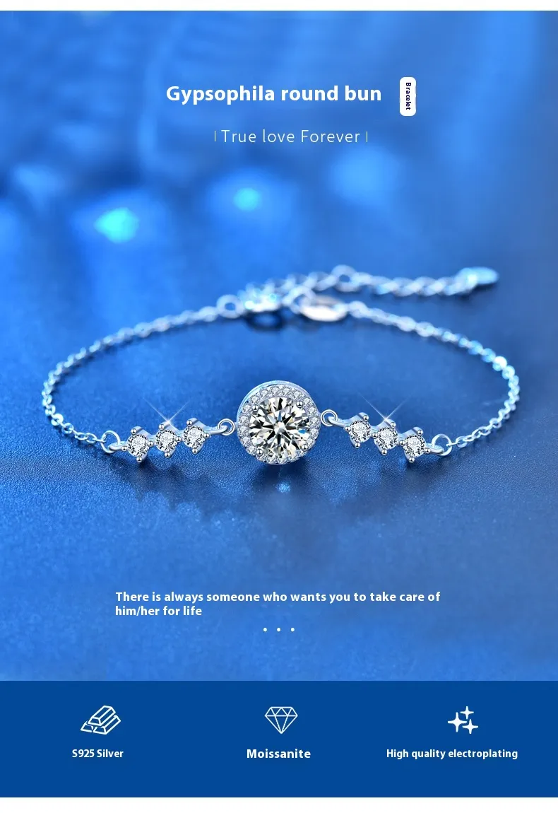 At the heart of the Women’s Starry Simple Moissanite Bracelet lies a stunning array of Moissanite gemstones, chosen for their unmatched sparkle and clarity. Moissanite is often referred to as the "diamond alternative" due to its extraordinary brilliance, outshining even diamonds in terms of fire and light dispersion. Each stone is meticulously cut to maximize its radiant glow, making this bracelet a truly eye-catching piece.