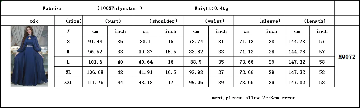 The robe is designed with wide sleeves, while the inner dress ensures full coverage, offering both modesty and comfort for any occasion.